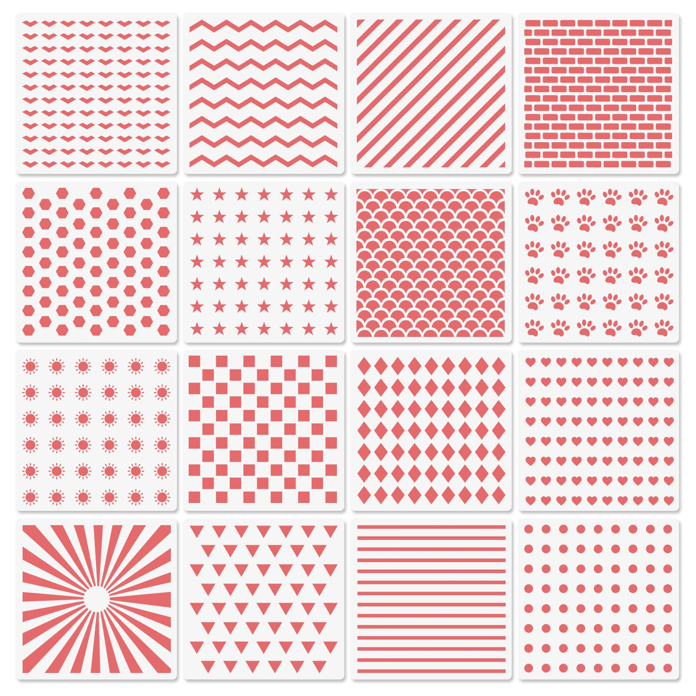 Cookie Stencils For Royal Icing Cookies Sugar Cookie, 16 Pcs 6X6In Reusable Plastic Biscuit Cake Stencils With Checkered Star He