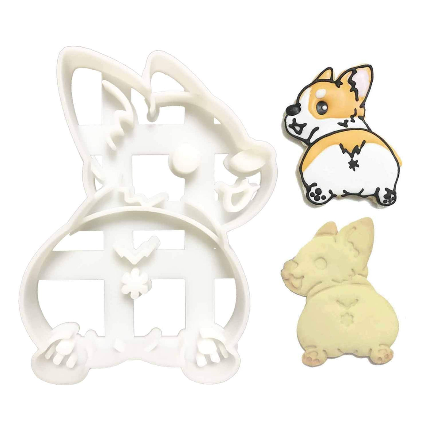 • Q: What colors are available for the Corgi's Butt Cookie Cutter? A: The cookie cutter is available in a classic white color.