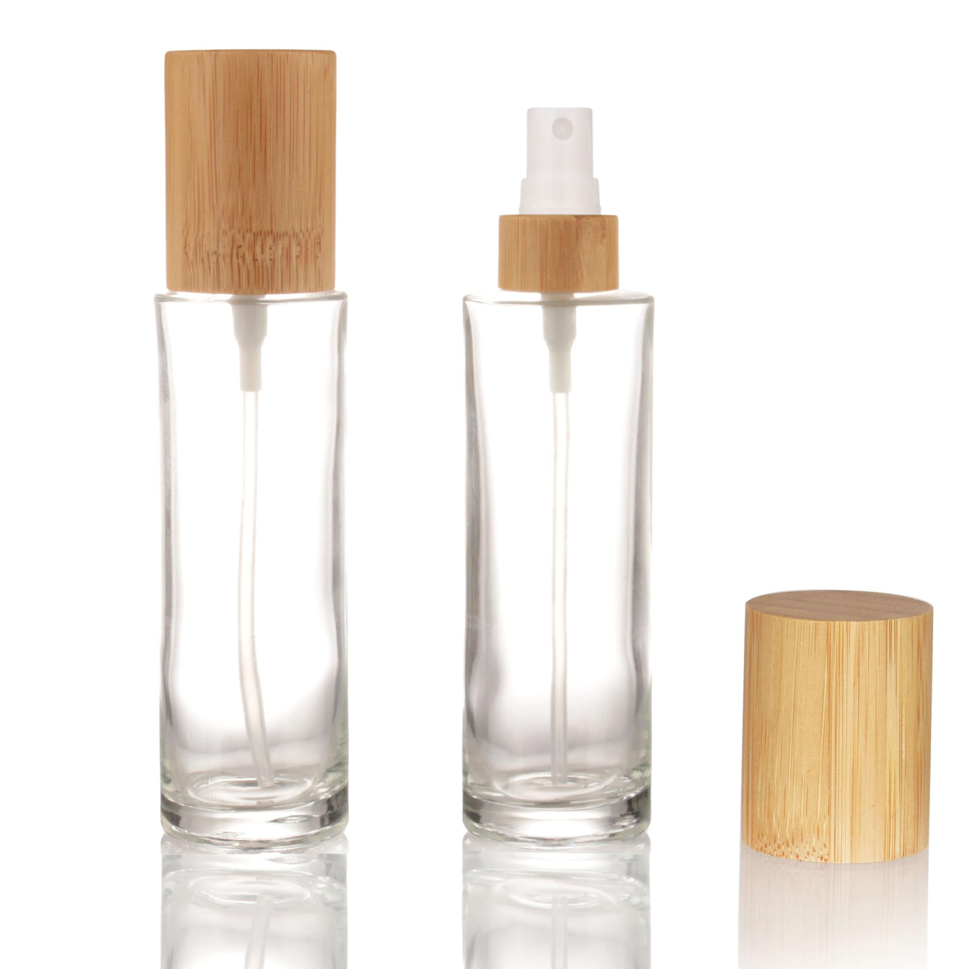 Cosidea 4 Pcs Empty 3.3Oz / 100Ml Bamboo Lid Clear Glass Spray Bottle With Fine Mist Despenser Head For Liquid Perfume Toiletrie