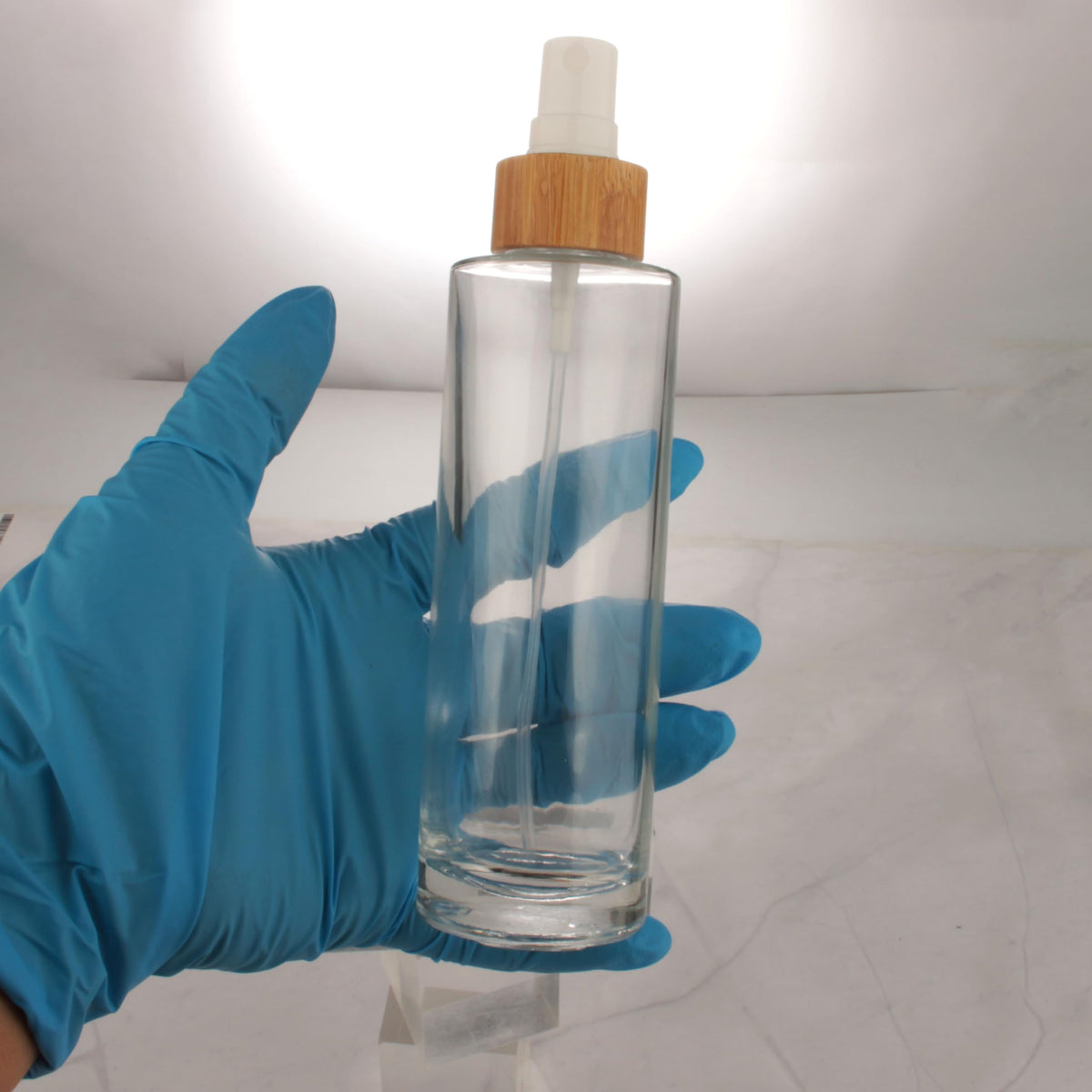 - Q: What material are these spray bottles made from? A: These spray bottles are made from glass with a bamboo lid.