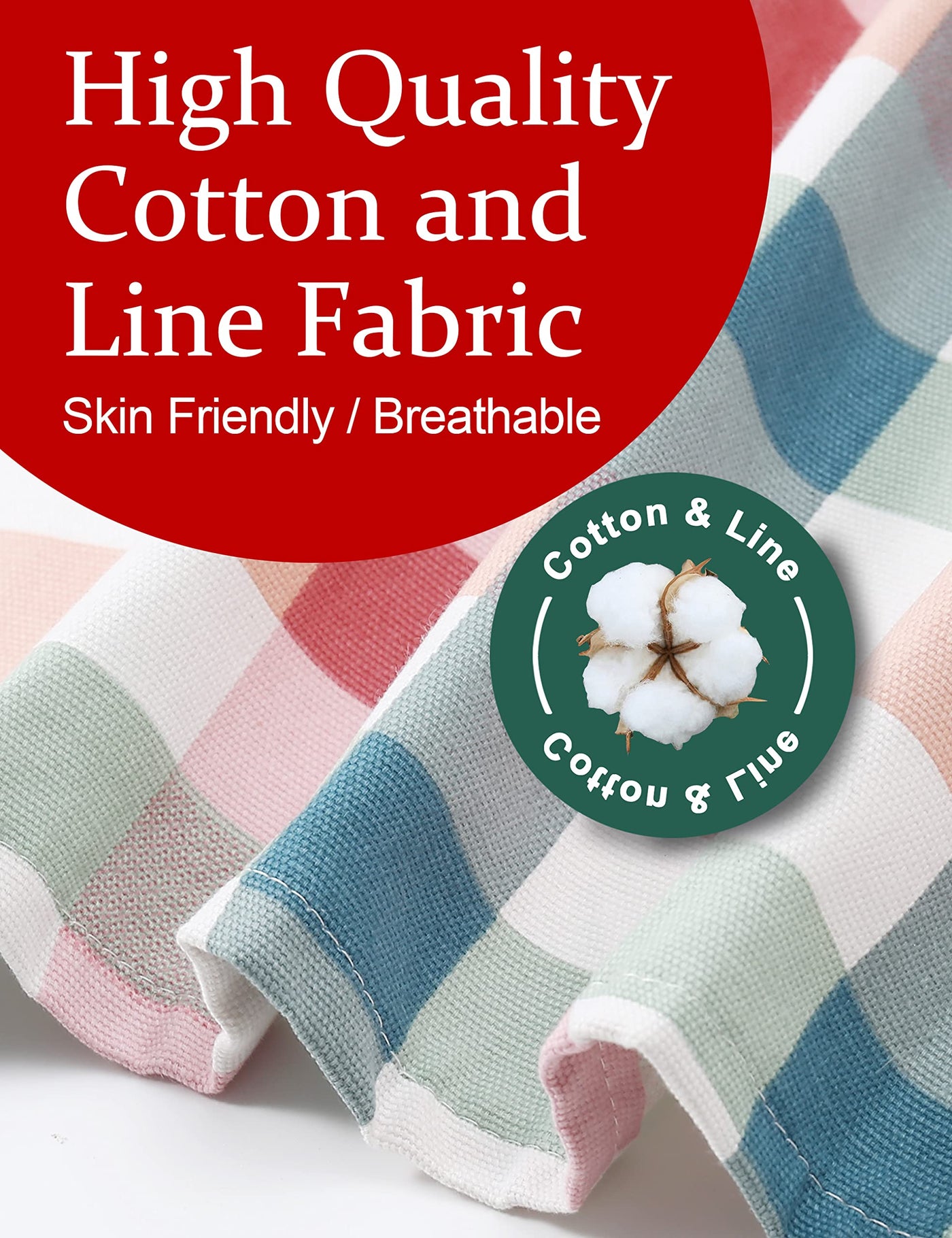 • Q: What material are the aprons made of? A: The aprons are made from a blend of cotton and linen, providing a soft and breathable fabric.