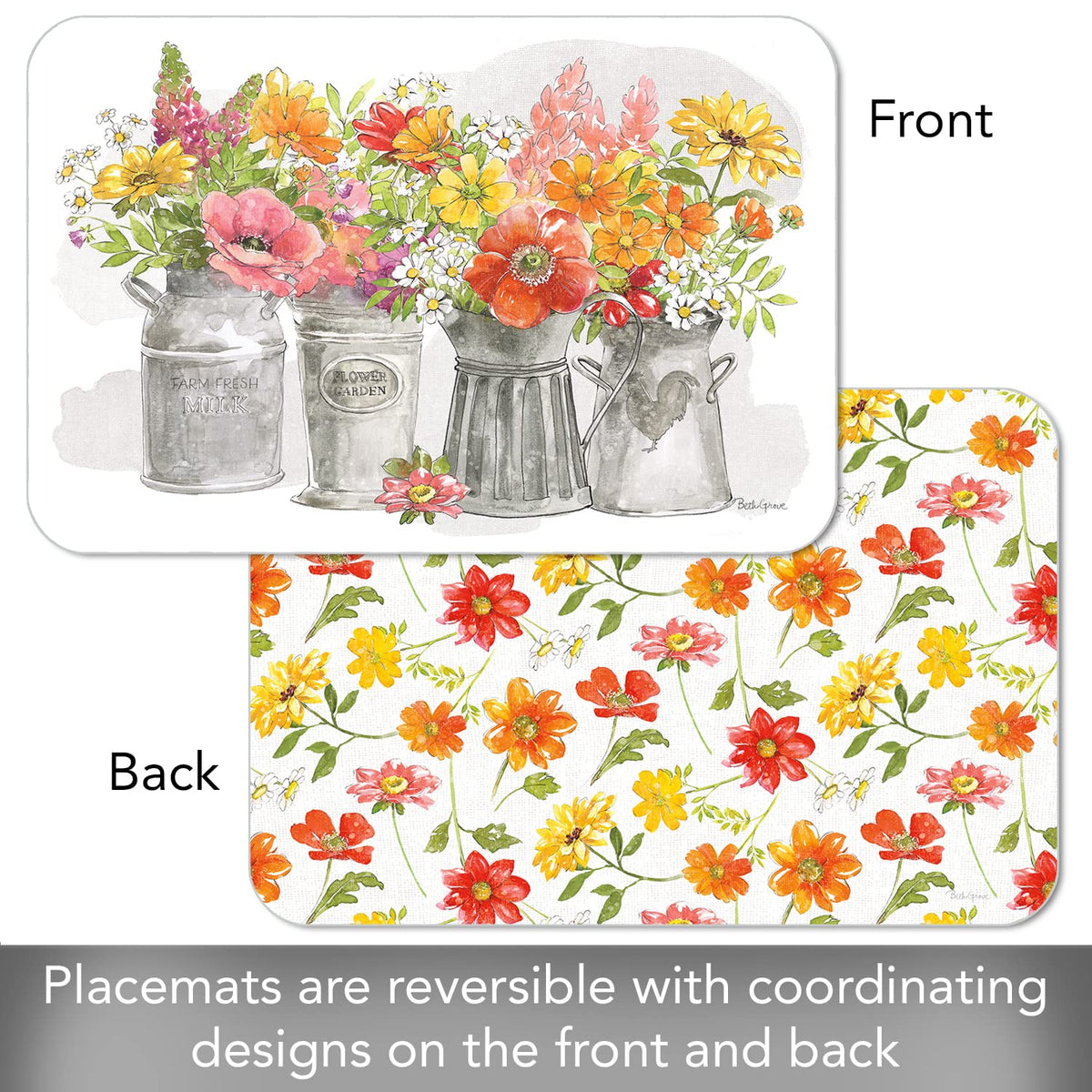 Counterart Farmhouse Floral 4 Pack Reversible Easy Care Flexible Plastic Placemats Made In The Usa Bpa Free Pvc Free Easily Wipe