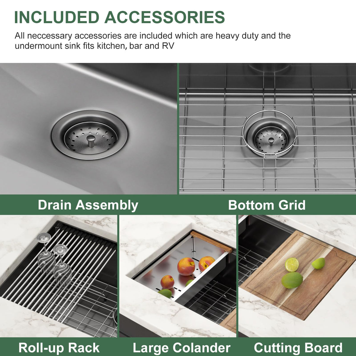- Q: What type of design does the sink feature for accessories? A: The sink has an innovative workstation design with sliding tracks on the front and back, allowing easy placement and sliding of accessories like cutting boards.