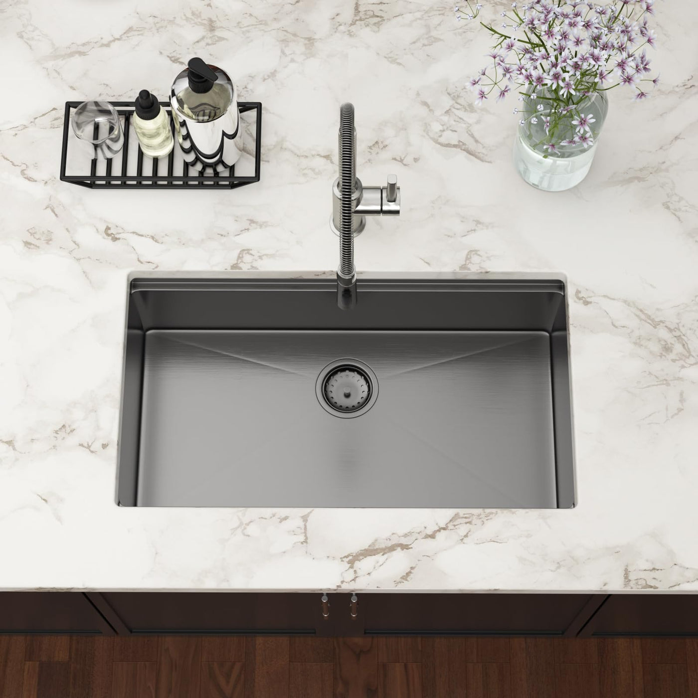 Couoko 33 X 19 Inch Black Undermount Kitchen Sink Workstation Single Bowl Gunmetal Black Stainless Steel Sink 16 Gauge Handmade