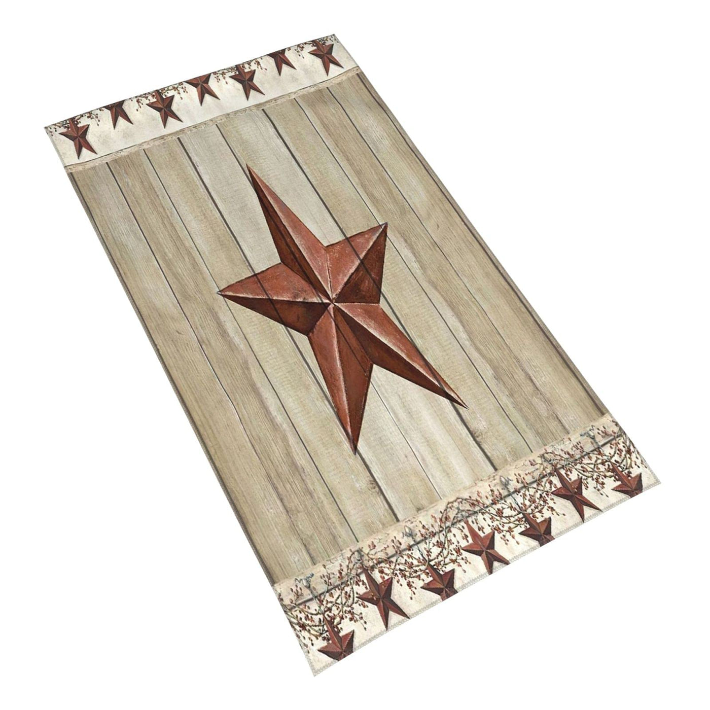 Covasa Hand Towels For Bathroom,Set Of 2,Rustic Barn Western Texas Star And Primitive Berries On Country Wooden Plank,Soft Absor