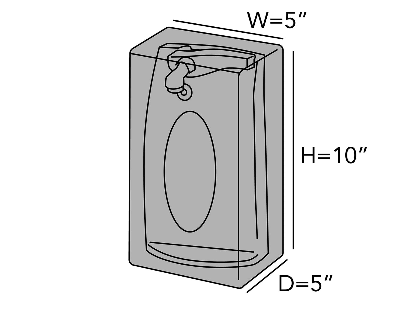 • Q: What are the dimensions of the Can Opener Cover? A: The Can Opener Cover has dimensions of 5 inches wide, 5 inches deep, and 10 inches high.
