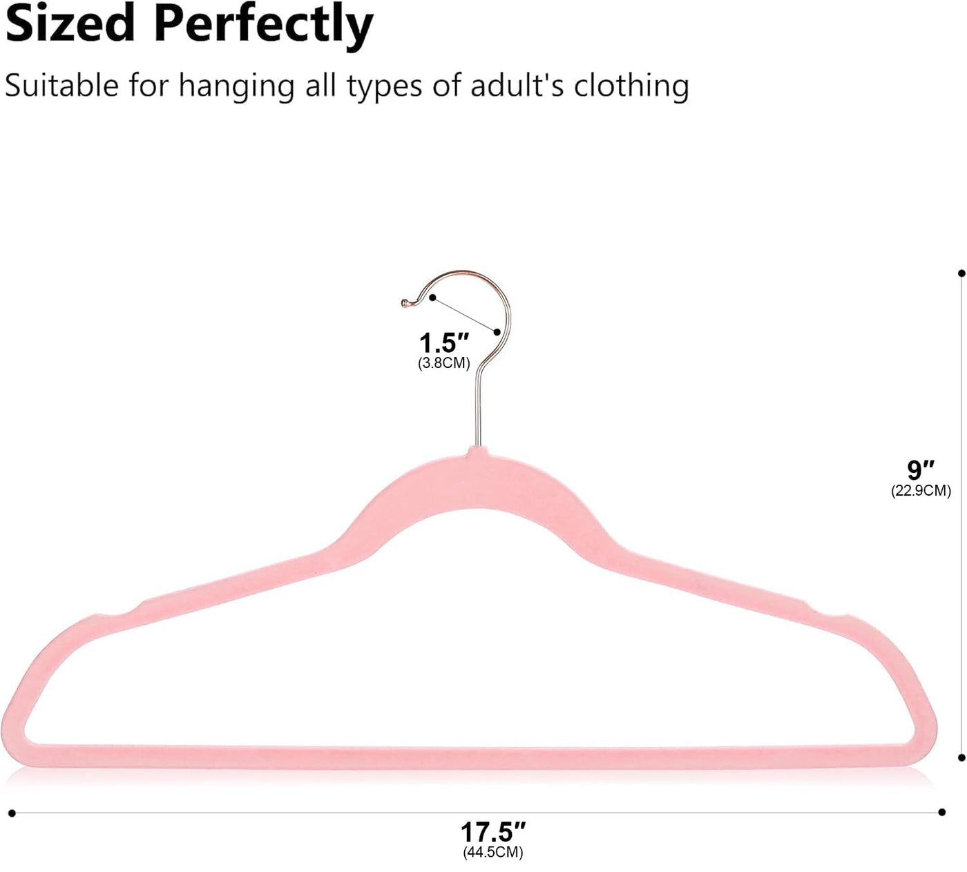 Cozymood Luxury Pink Velvet Hangers 60 Pack Premium Clothes Hangers Non-Slip Felt Hangers Strong Pink Hangers Heavy Duty Coat Hangers Sturdy Suit Hangers Space Saving No Shed 360 Rotating Hook