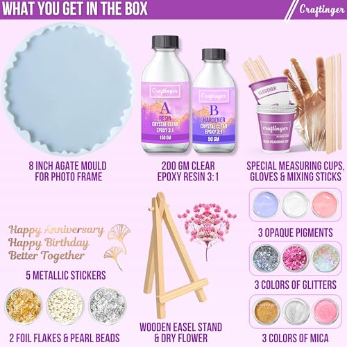 Craftinger Resin Art Photoframe Kit With 300Gm Resin & Wooden Stand Acrelic Sticker Of Happy Birthday And Happy Anniversary