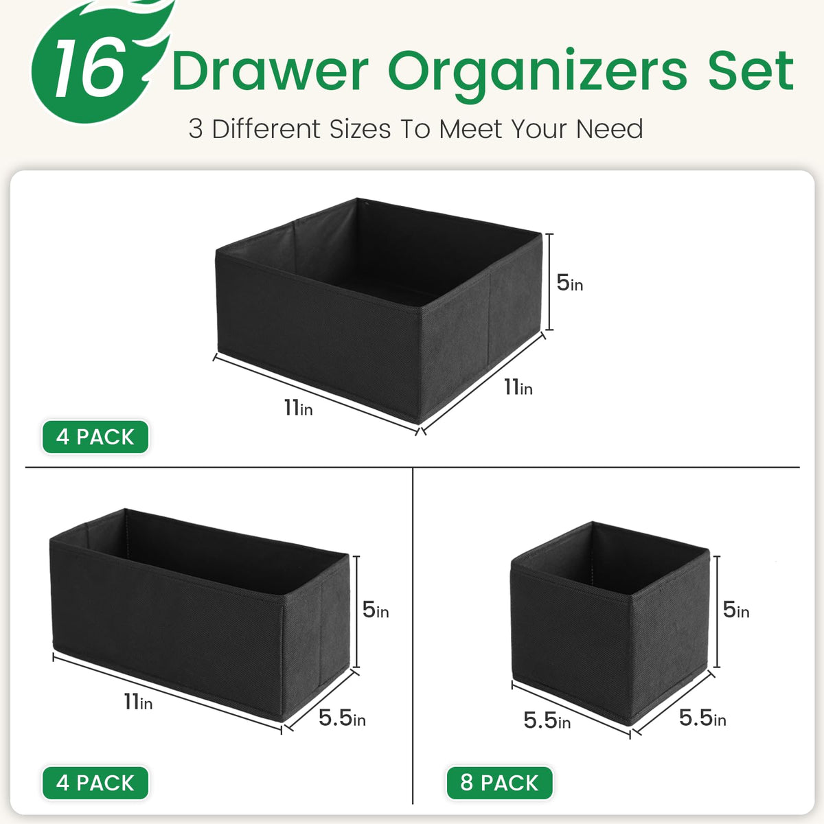 Criusia 16 Pack Underwear Drawer Organizer, Drawer Organizer Clothes, Foldable Cloth Storage Box Closet Dresser Drawer Divider O