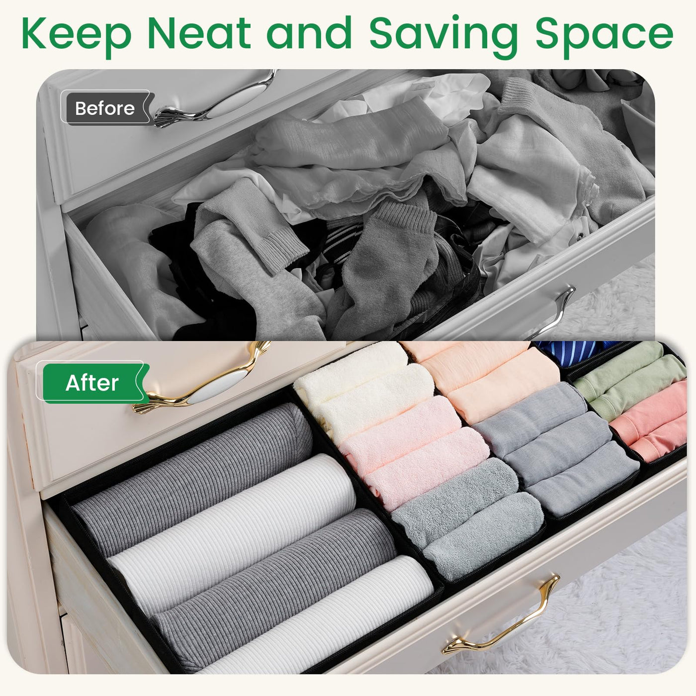- Q: What materials are used in the construction of the drawer organizers? A: The drawer organizers are made from breathable non-woven fabric with cardboard backing for added stability. The design includes a zipper and double stitching for durability.