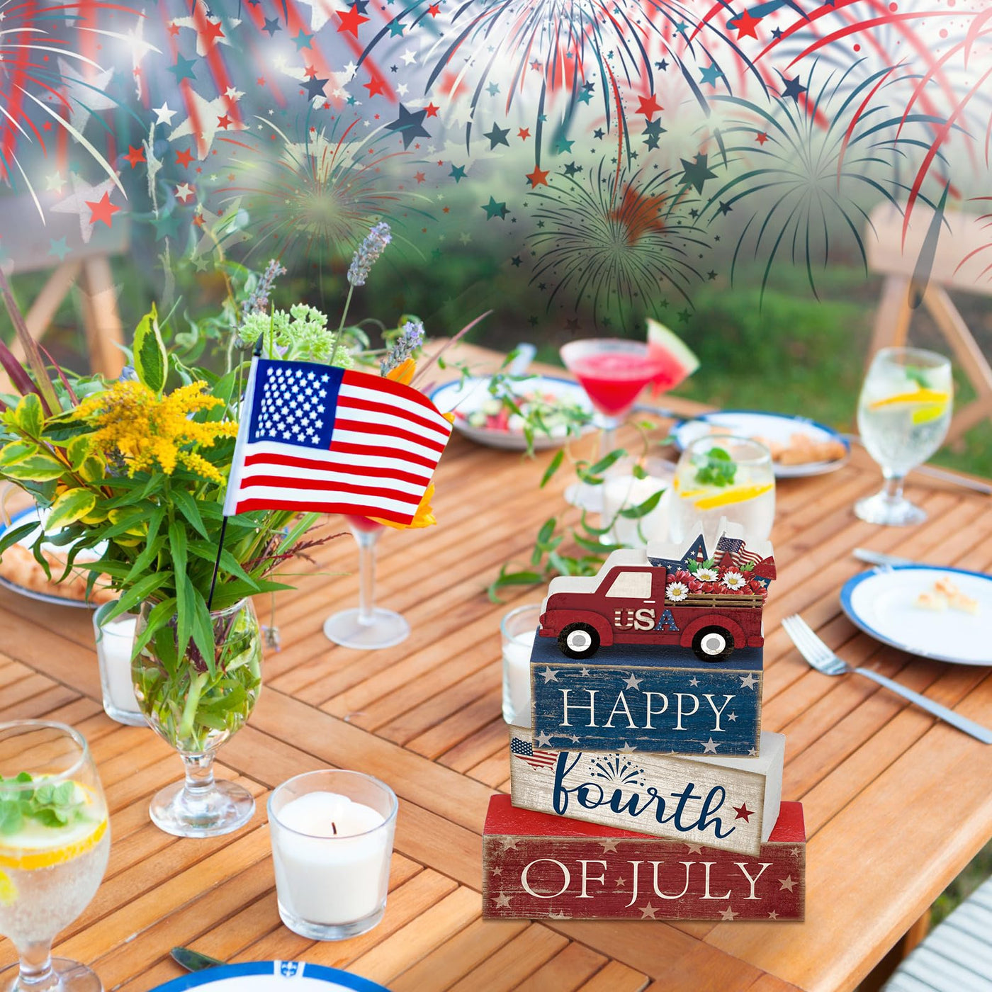 CroBlissful 4 Pcs Veterans Day Decorations Patriotic Memorial Day Tabletop Decorations Red White Blue Table Centerpieces Wood Bl