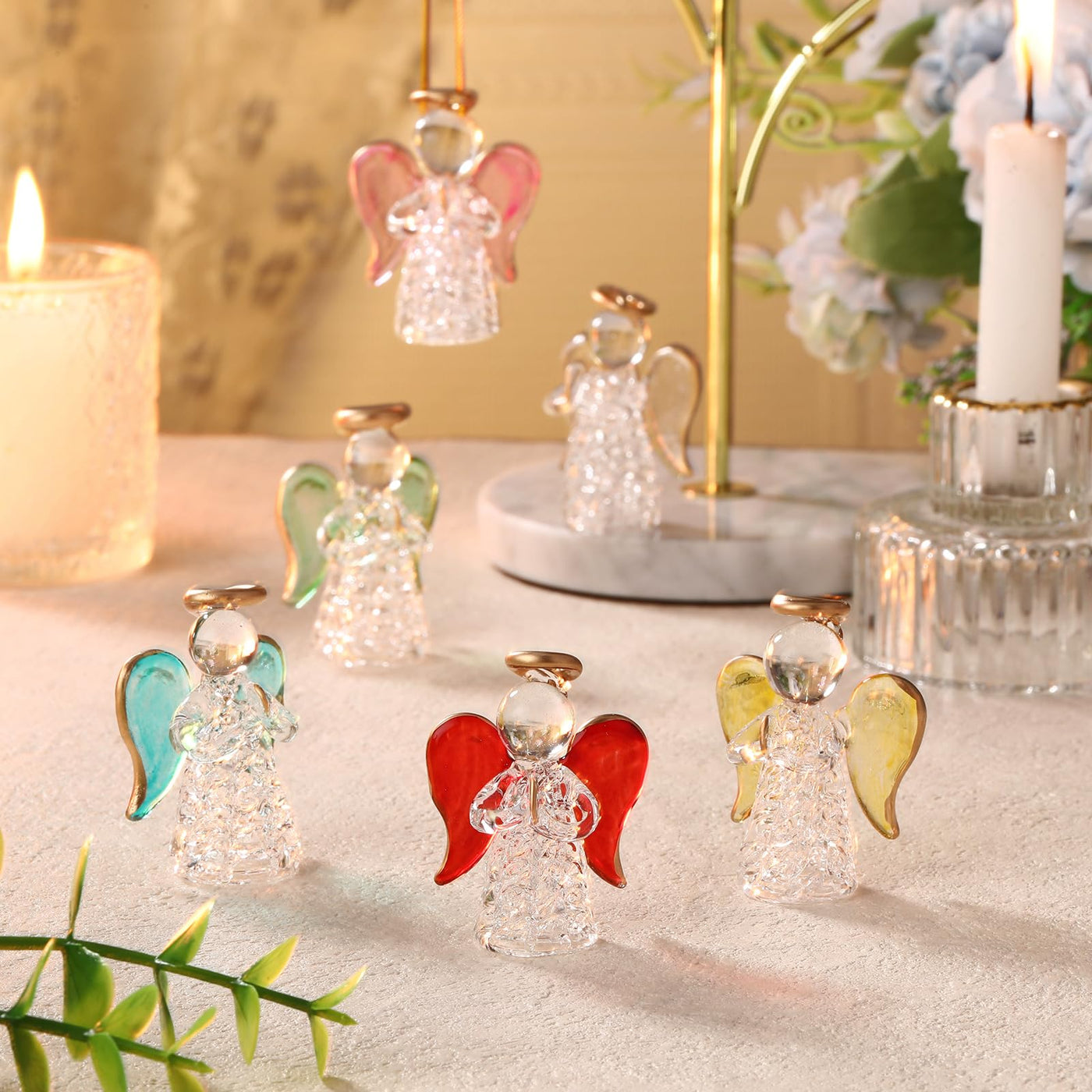 CroBlissful 6 Pcs Crystal Angel Figurines Christmas Ornaments Glass Guardian Angel Ornaments Hanging Decor Christmas Church Gift