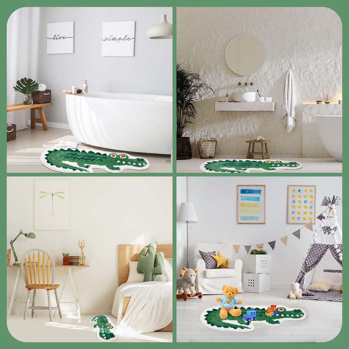 Crocodile Shaped Bath Mat For Bathroom, Cute Green Animal Bathroom Rug Non-Slip Door Mat Cartoon Alligator Bathroom Shower Rug A