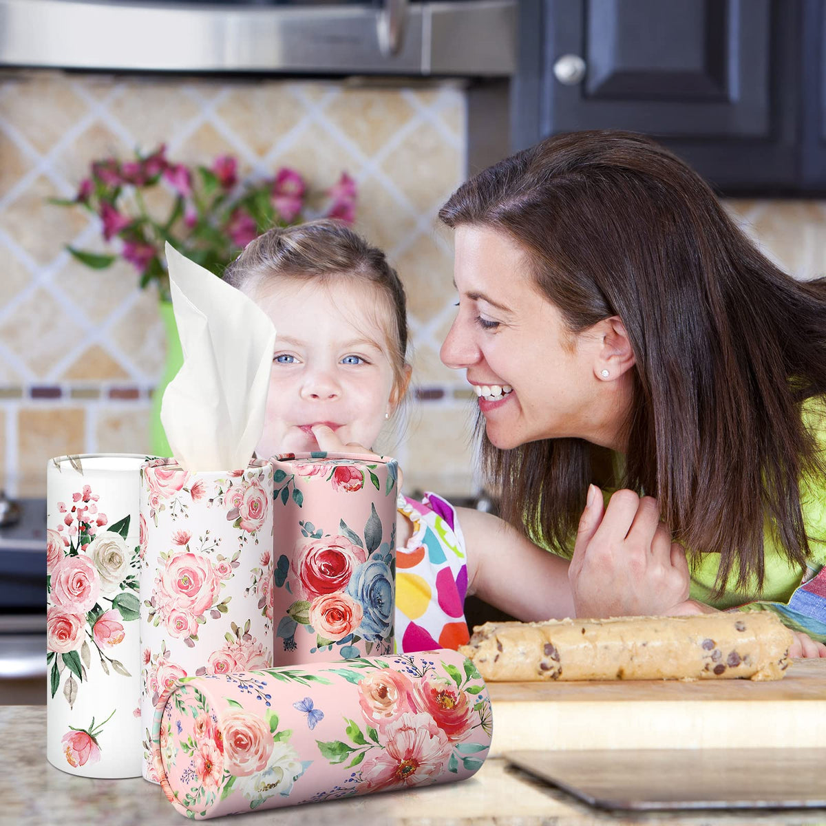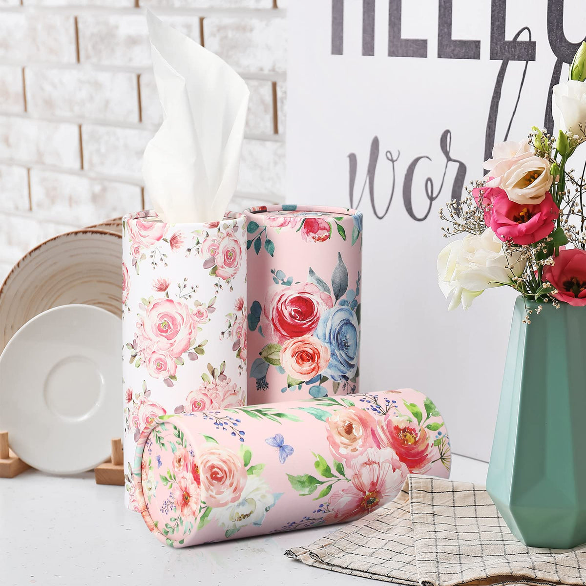 Ctosree 16 Pcs Car Tissue Cylinder With Facial Tissue Bulk Round Floral Car Tissue Holder Cylinder Tube Tissue Tubes Round Tissu