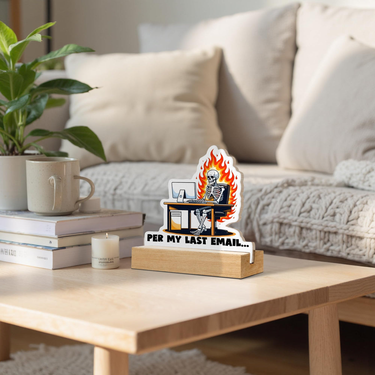CTYNU Funny Skeleton Desk Decor Sign, Per My Last Email Skeleton Shaped Wood Sign Plaque with Wooden Stand for Home Office Desk