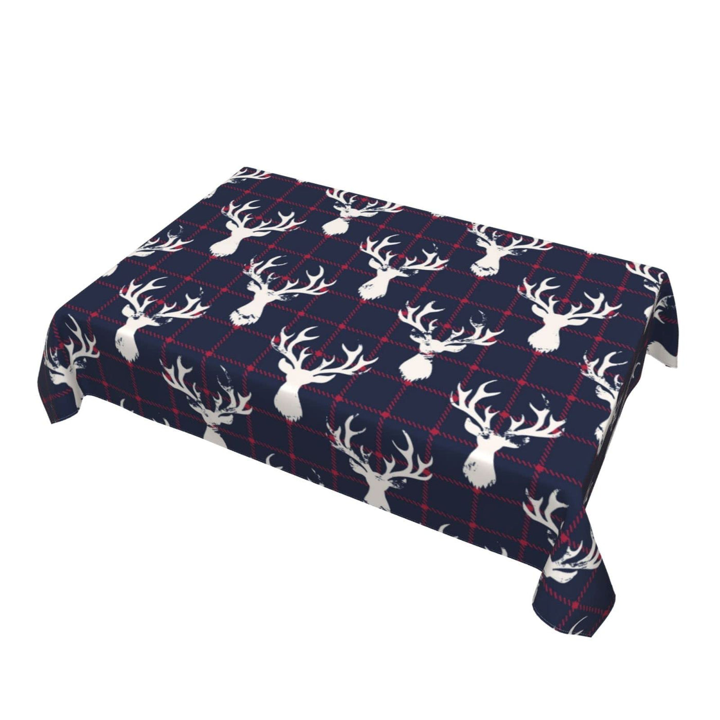 Cukemip Farmhouse Table Cloth Moose Deer Navy Blue Plaid Tablecloth For Dinning Room Kitchen Birthday Party Outdoor Decorations