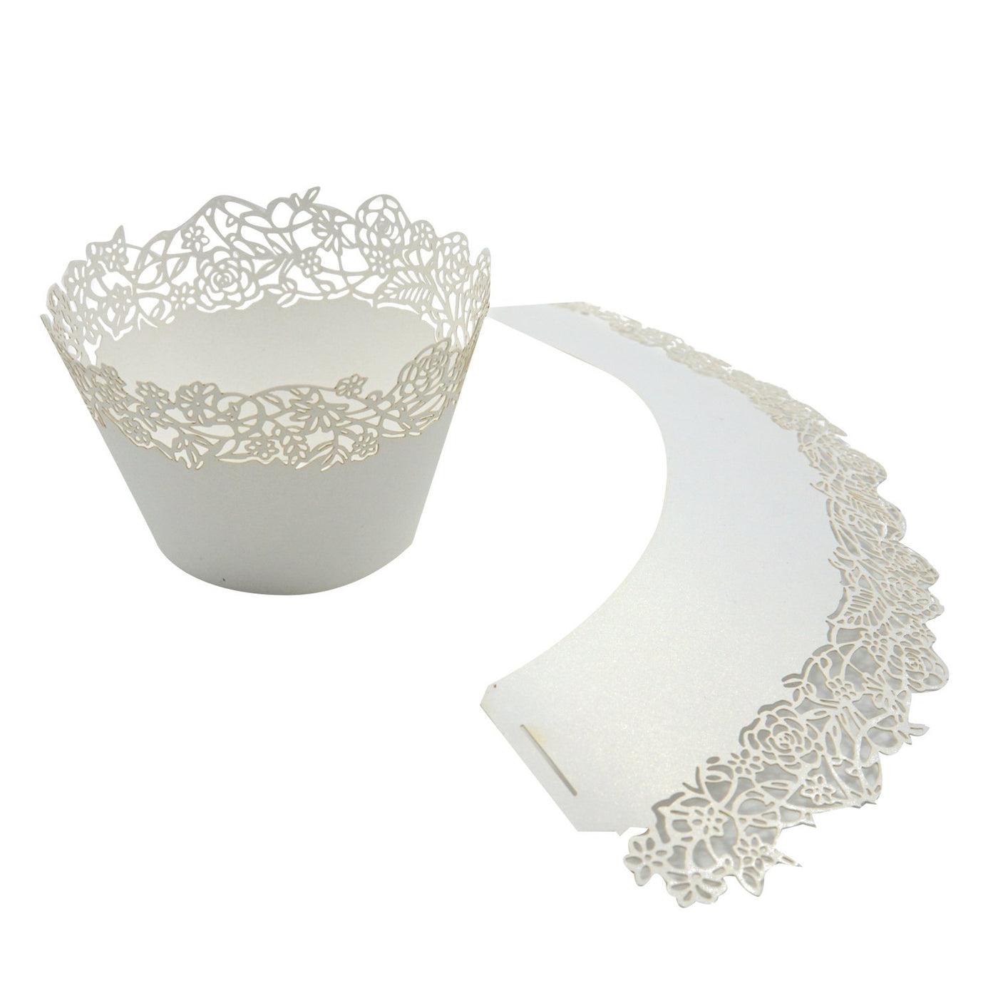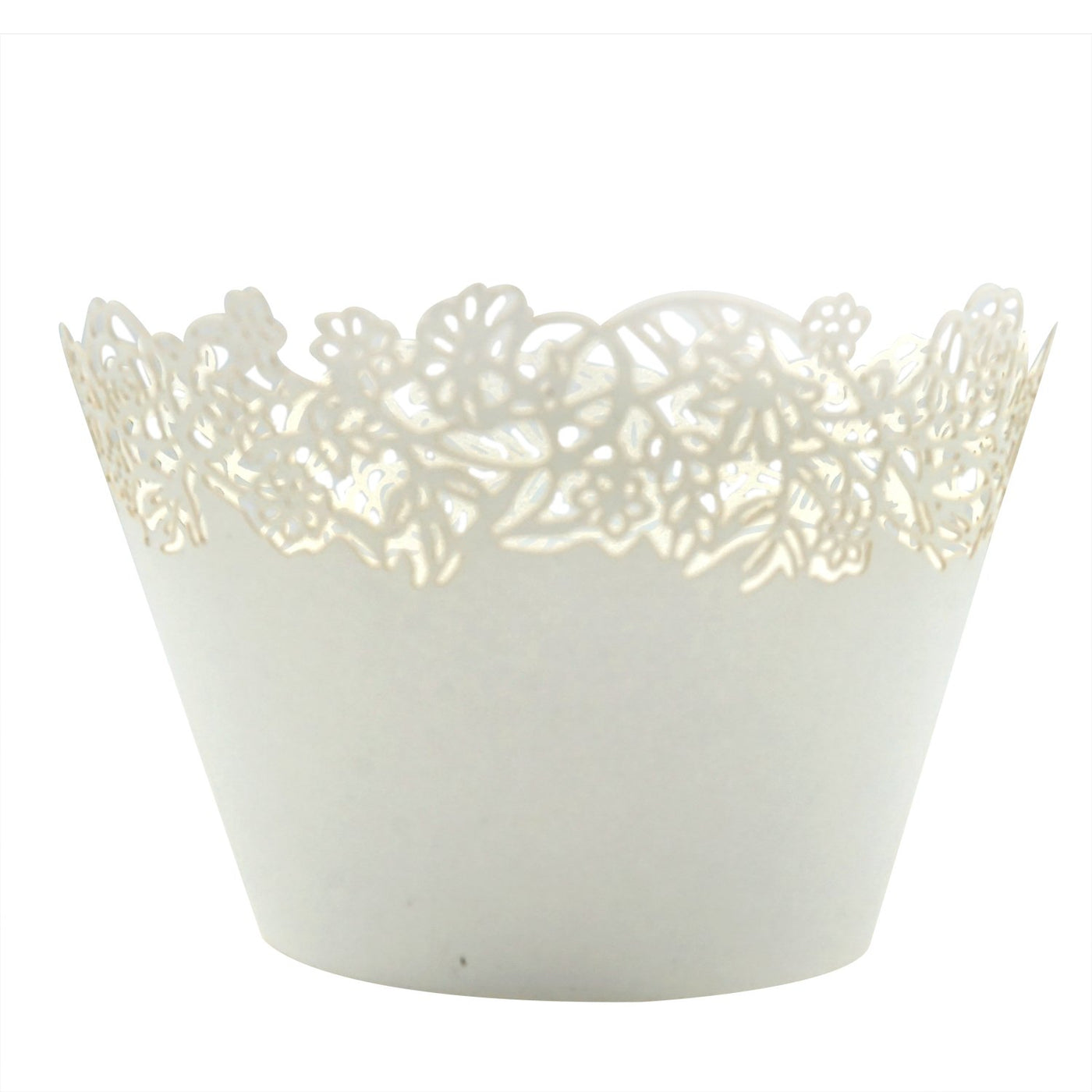 Cupcake Wrappers Pack Of 50 White Filigree Artistic Bake Cake Paper Cups Little Vine Lace Laser Cut Liner Baking Cup Muffin Case