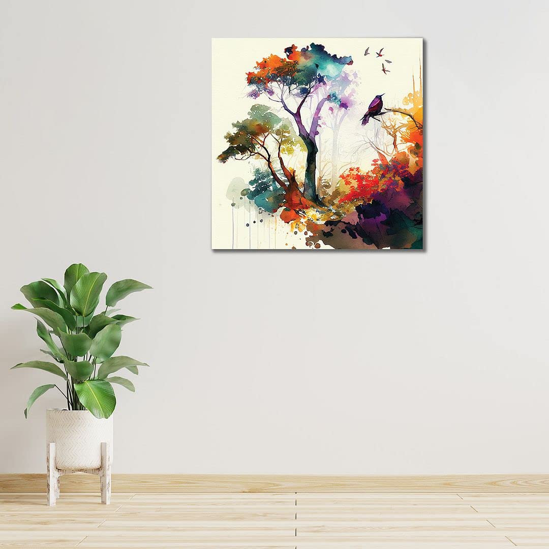CVANU Floral Theme with Birds Printed Canvas Wall Painting with Wooden Frame for Decoration(24x24inch) 202305-137