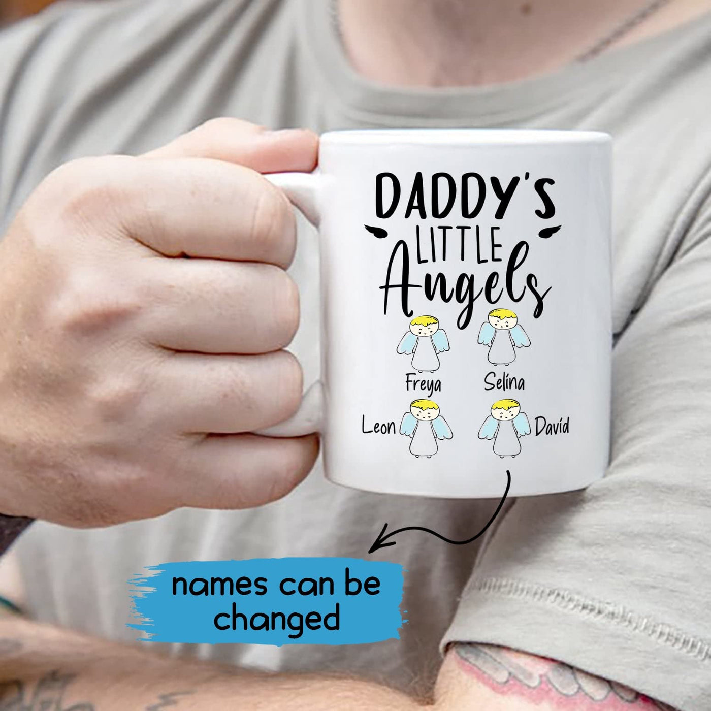 Dad Gift Personalized Mugs Daddy'S Little Angel Mug, Dad Gifts Custom Kids Names, Dad Cup Gifts For Father/Papa, Dad Ceramic Mug