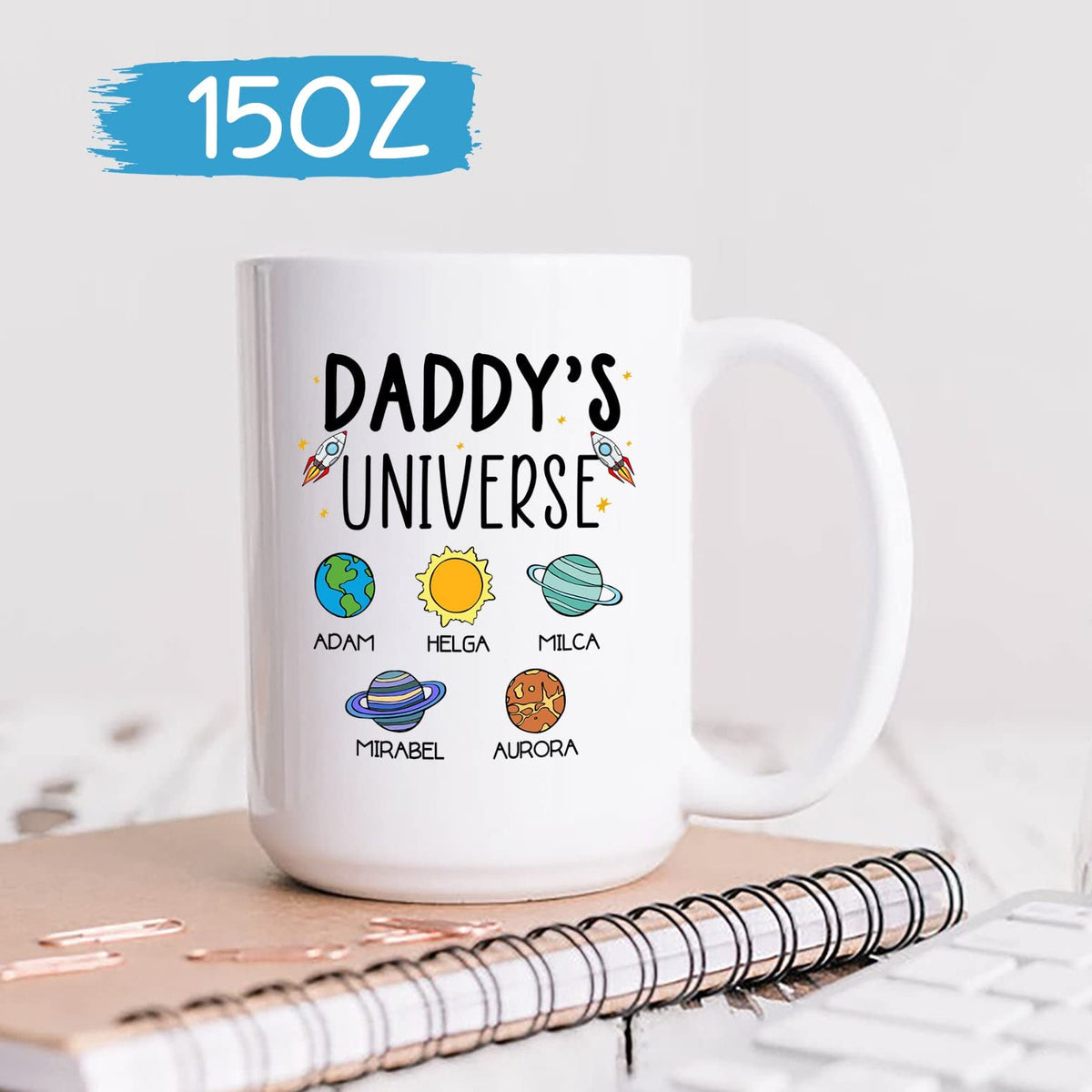 Daddy'S Universe Coffee Mug Custom Kid'S Name Mug For Dad, Personalized Dad Mugs Gifts For Daddy/Father/Papa, Customized Dad Mug