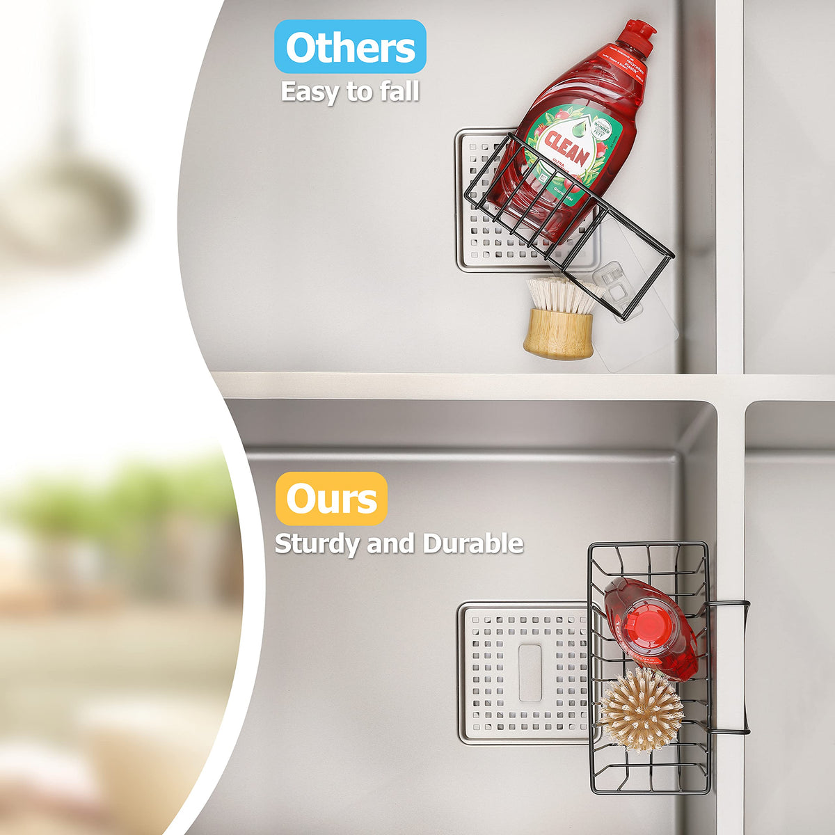 Damita Kitchen Sponge Holder For Sink Kitchen Sink Basket Sink Caddy Brush Dishwashing Liquid Drainer Rack Black, Medium (7.5''X
