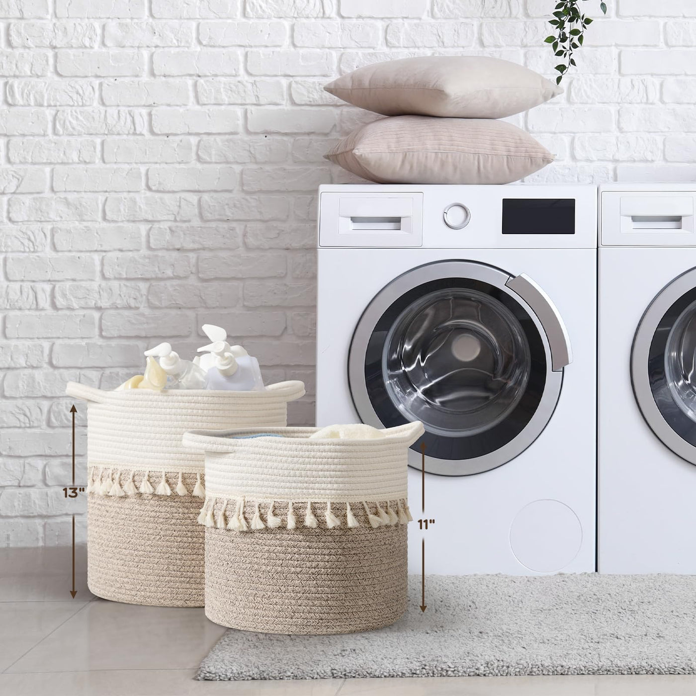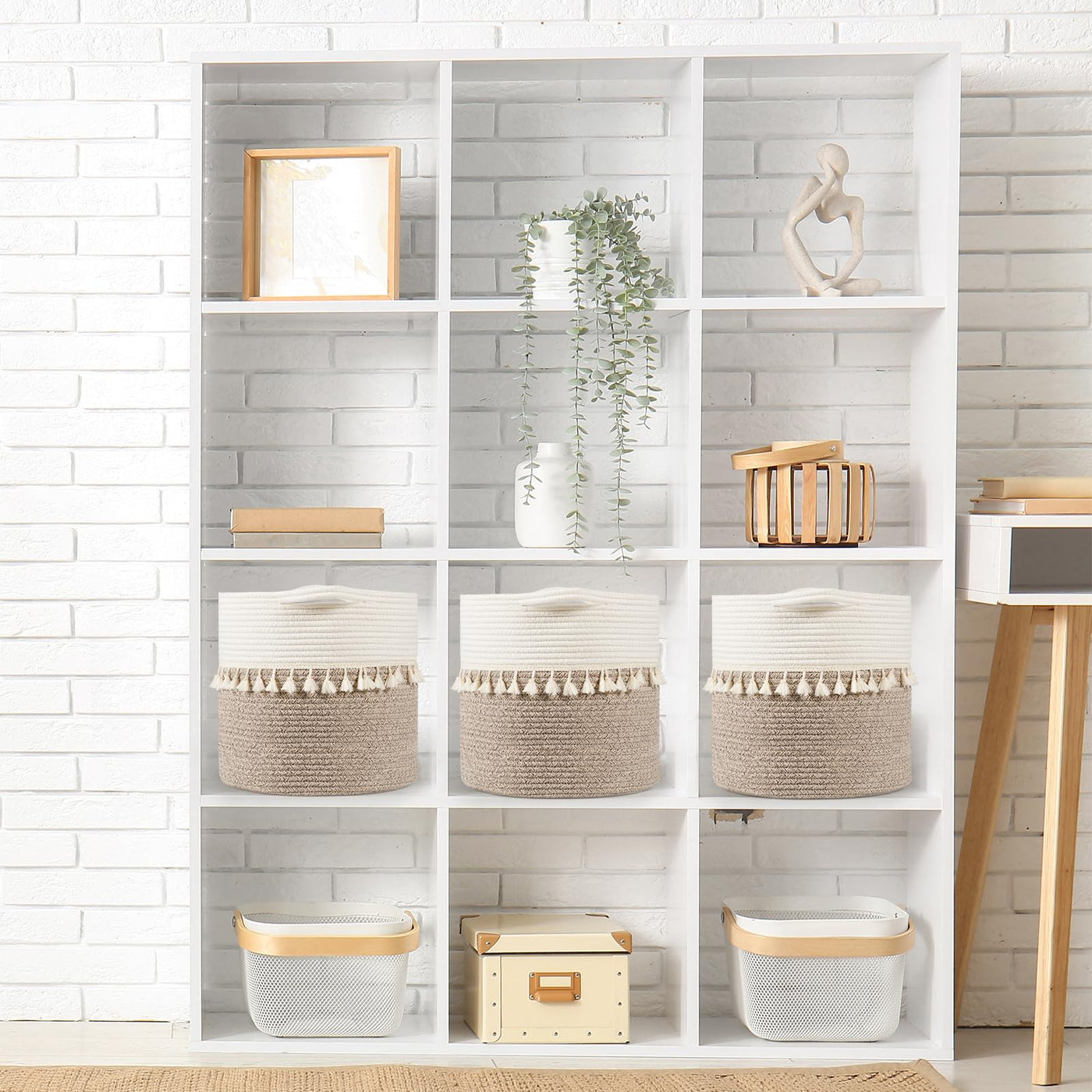 Danpinera 11 Inch Storage Baskets Set Of 3, Cotton Woven Baskets For Storage With Strong Handles & Stylish Tassel, Storage Bins,