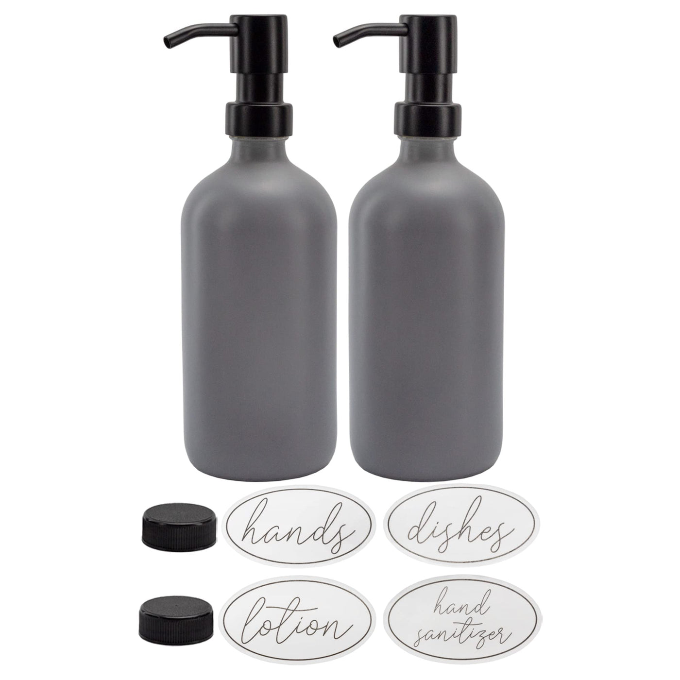 Darware 16Oz Glass Pump Bottles (Set Of 2, Gray W/Black); Soap Dispenser Pump Bottles With Brushed Metal Pump Tops
