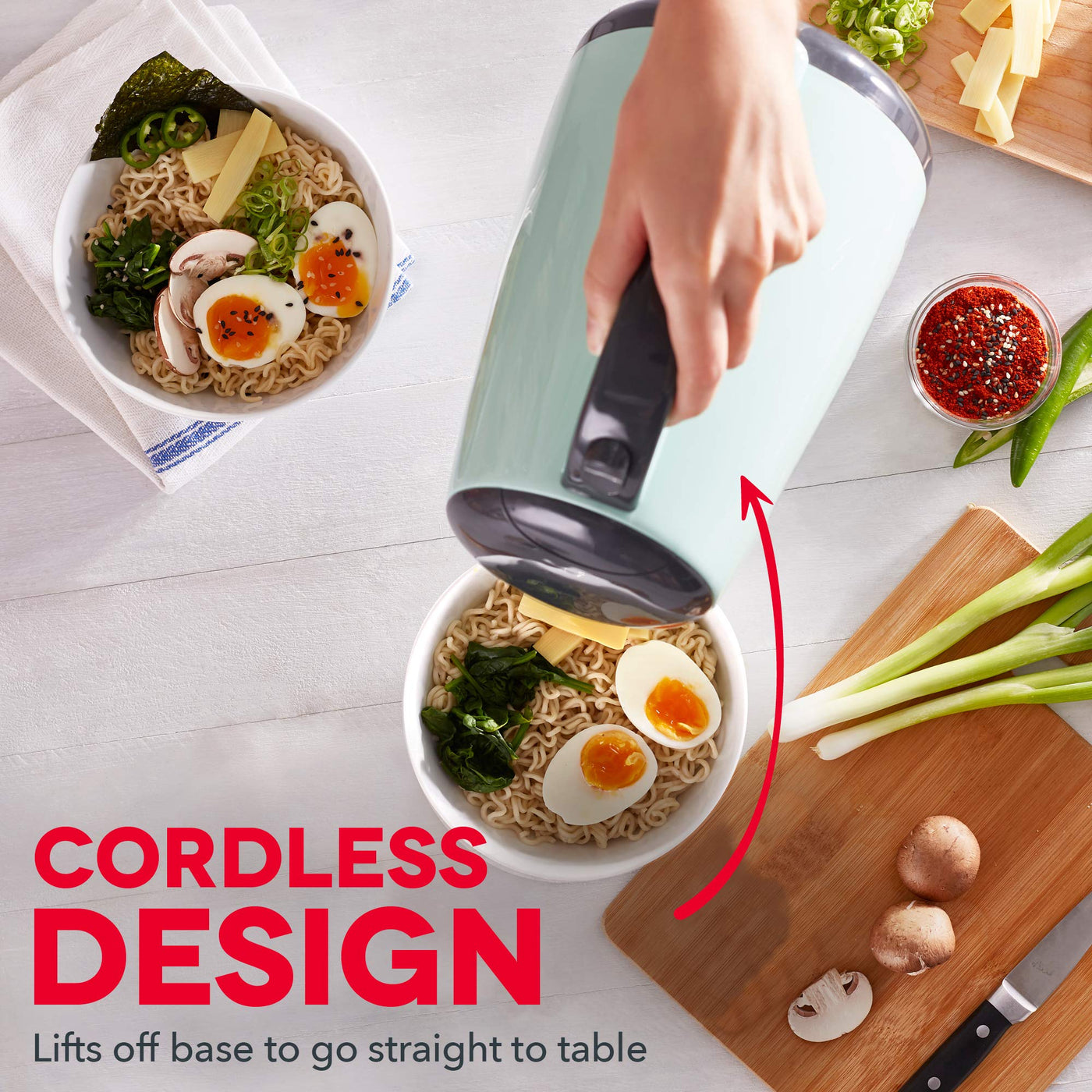 - Q: Is the kettle cordless? A: Yes, the Dash Easy Electric Kettle is cordless, allowing for easy transport from the kitchen to the table.