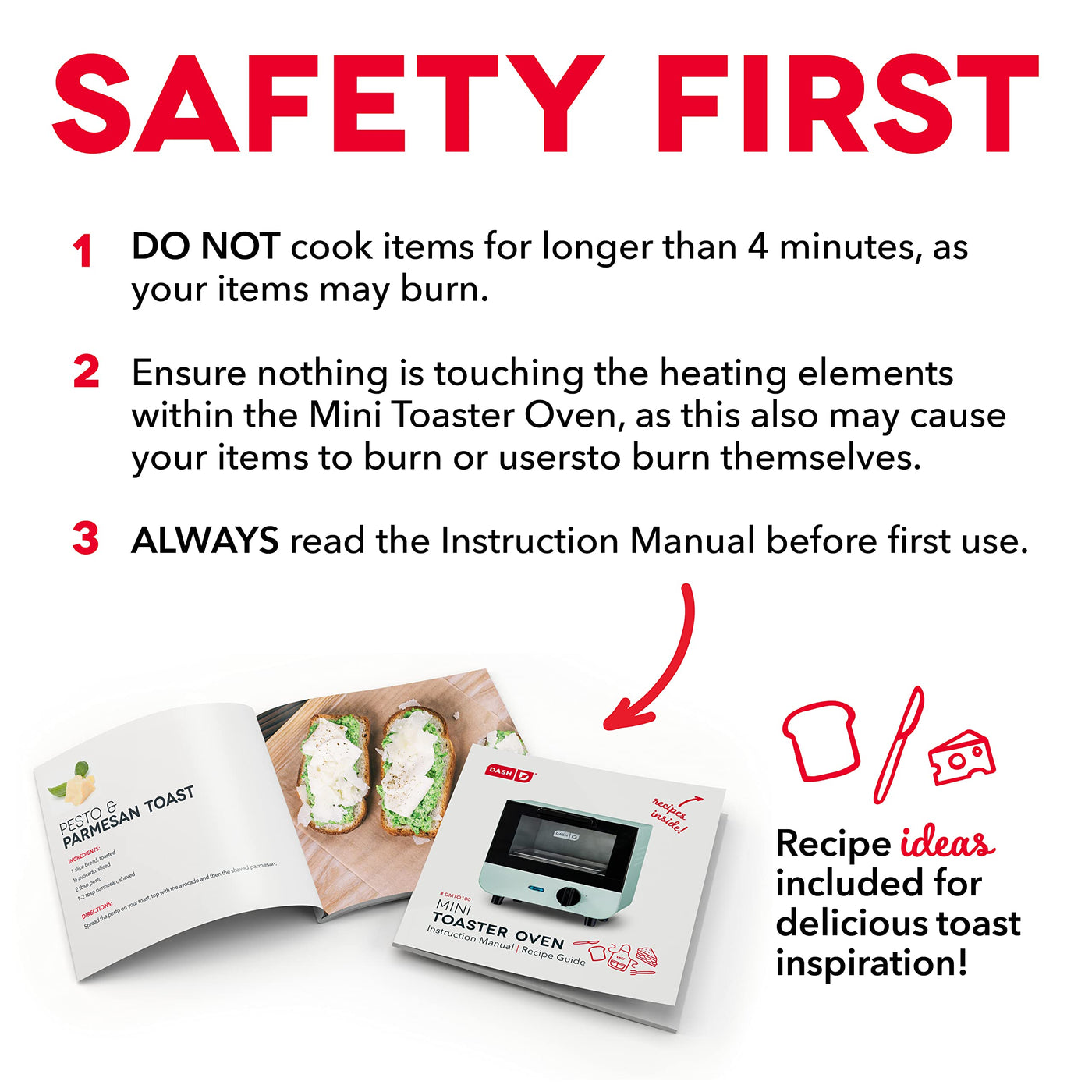 - Q: What can I cook in the DASH Mini Toaster Oven? A: The DASH Mini Toaster Oven is versatile and can cook toast, bagels, mini-pizzas, paninis, and even cookies, making it ideal for quick snacks and smaller portions.