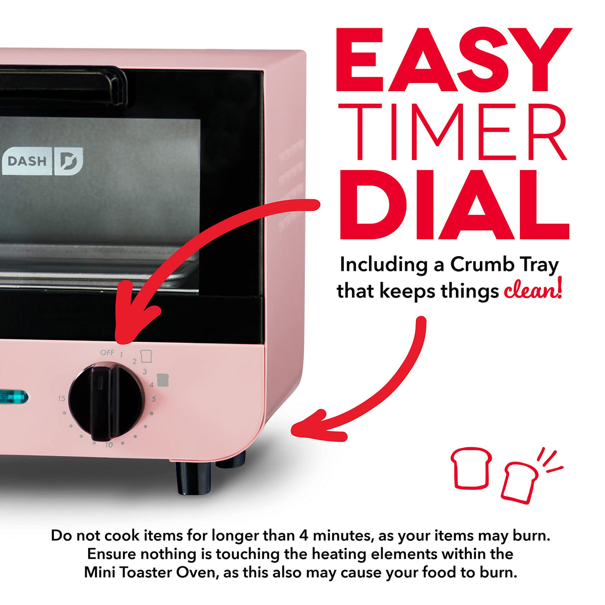 - Q: How do I clean the DASH Mini Toaster Oven? A: Cleaning is easy since the baking tray, oven rack, and crumb tray are all removable and dishwasher safe. Other surfaces can be wiped clean.
