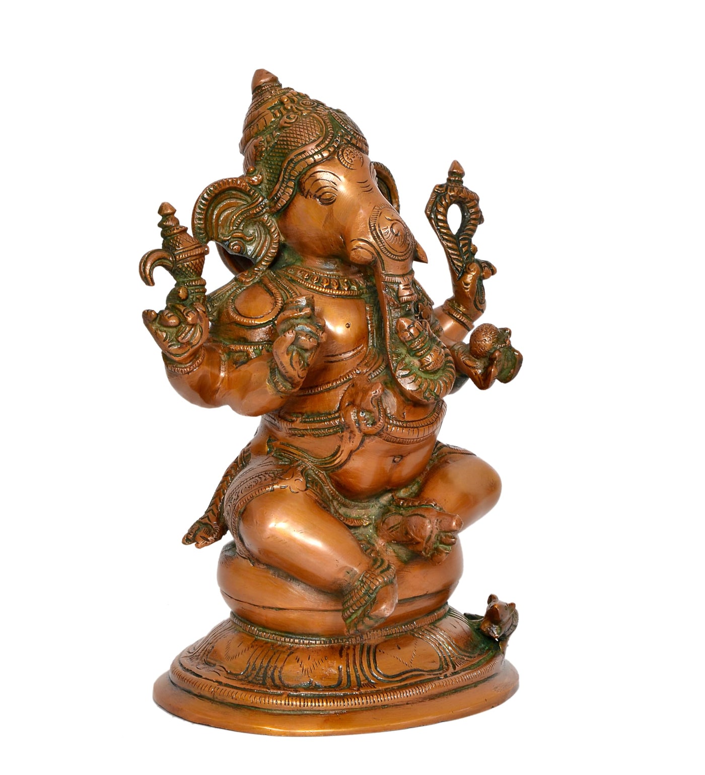 Dattatreya Brass Ganesh Statue Lord Ganesha Idol For Home Decor And Pooja Hindu God Ganapati Figurine (Height 10 Inch)