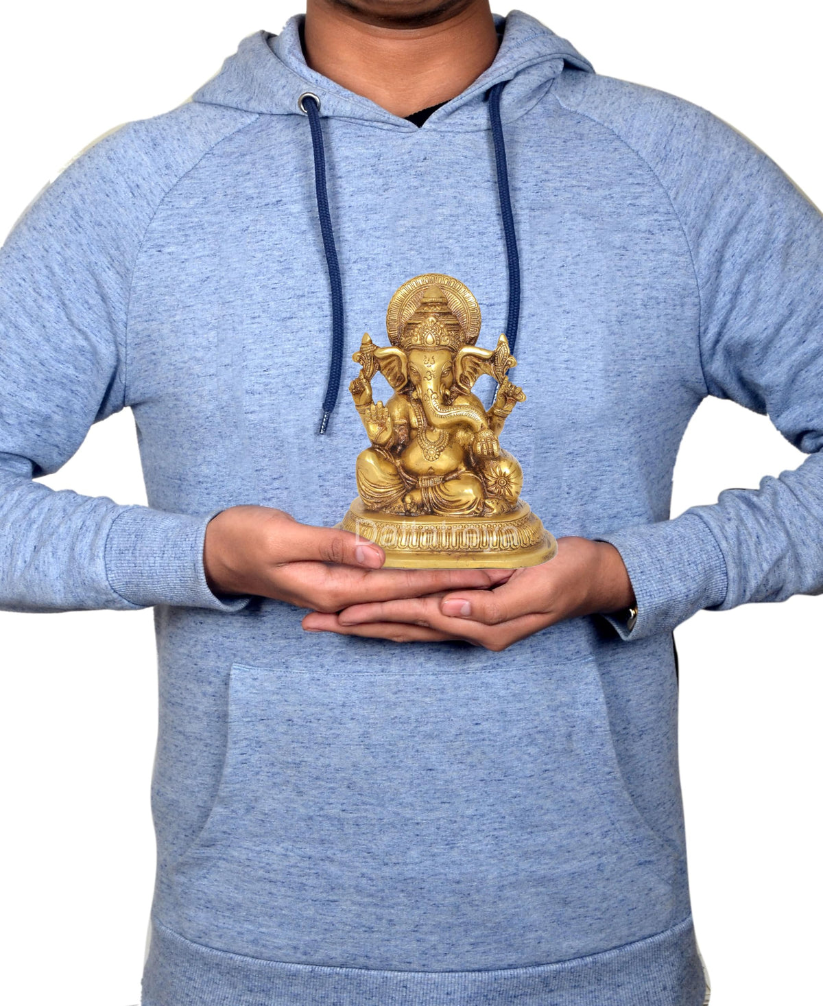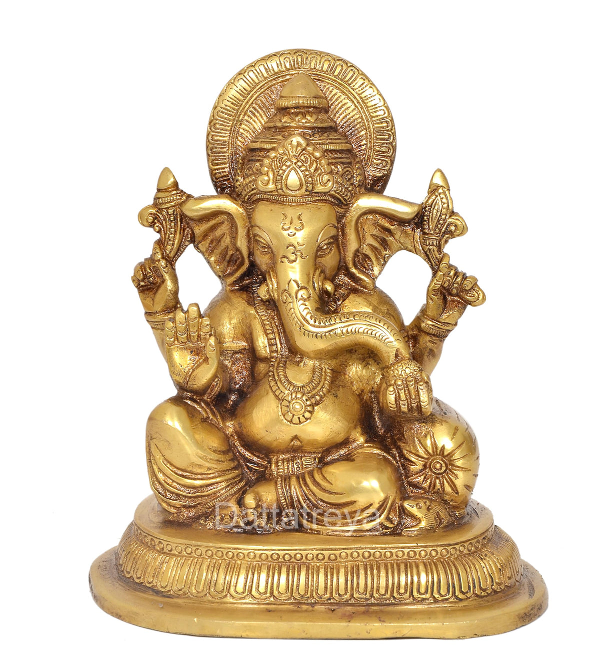 Dattatreya Brass Lord Ganesha Religious Statue Idol Ganesh Murti Home Decor Office Puja Mandir (Height 7.5 Inch)
