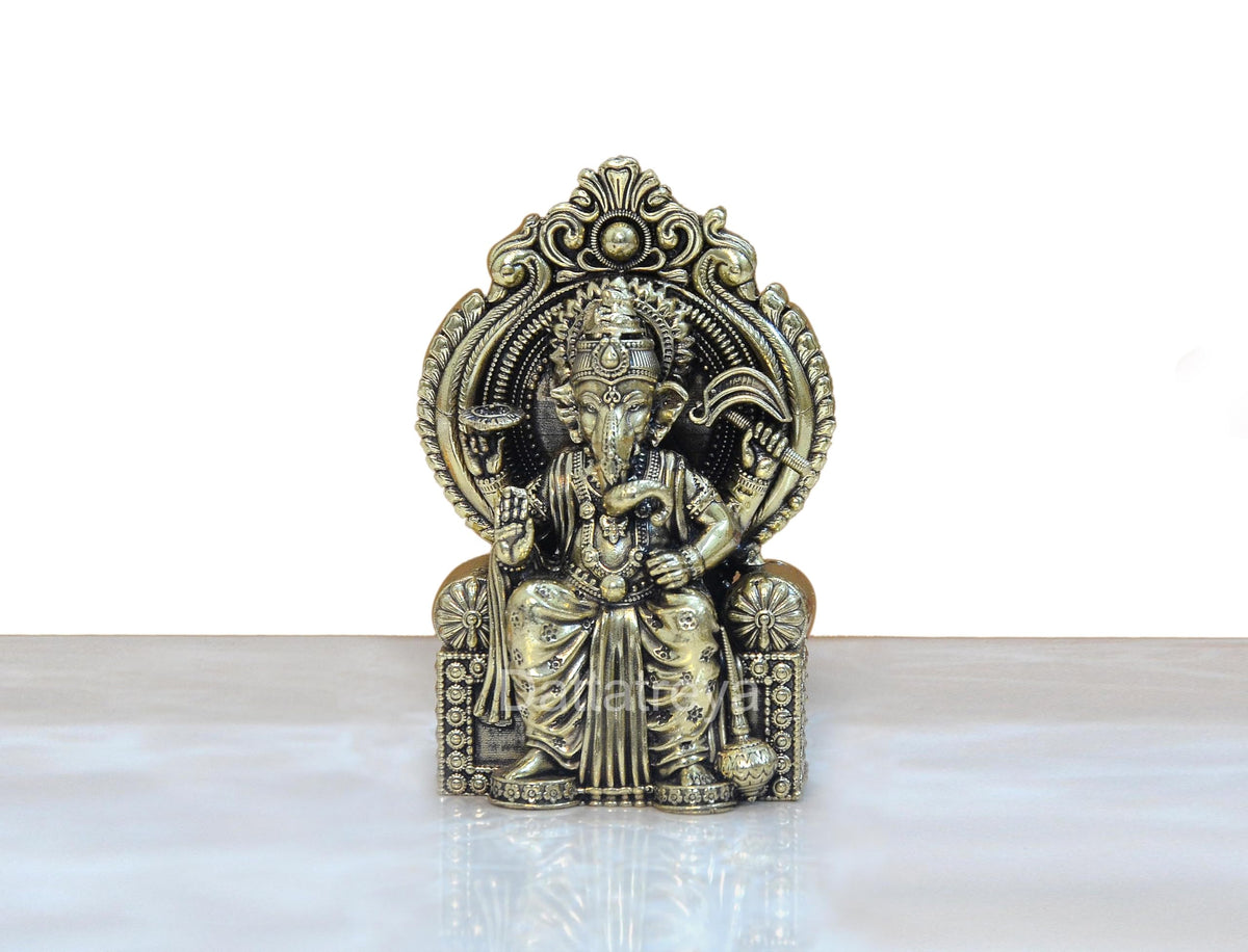 Dattatreya Bronze Lord Ganesha Idol Ganesh Statue Decorative Sculpture For Home Office Mandir Pooja Showpiece (Height 4 Inch)