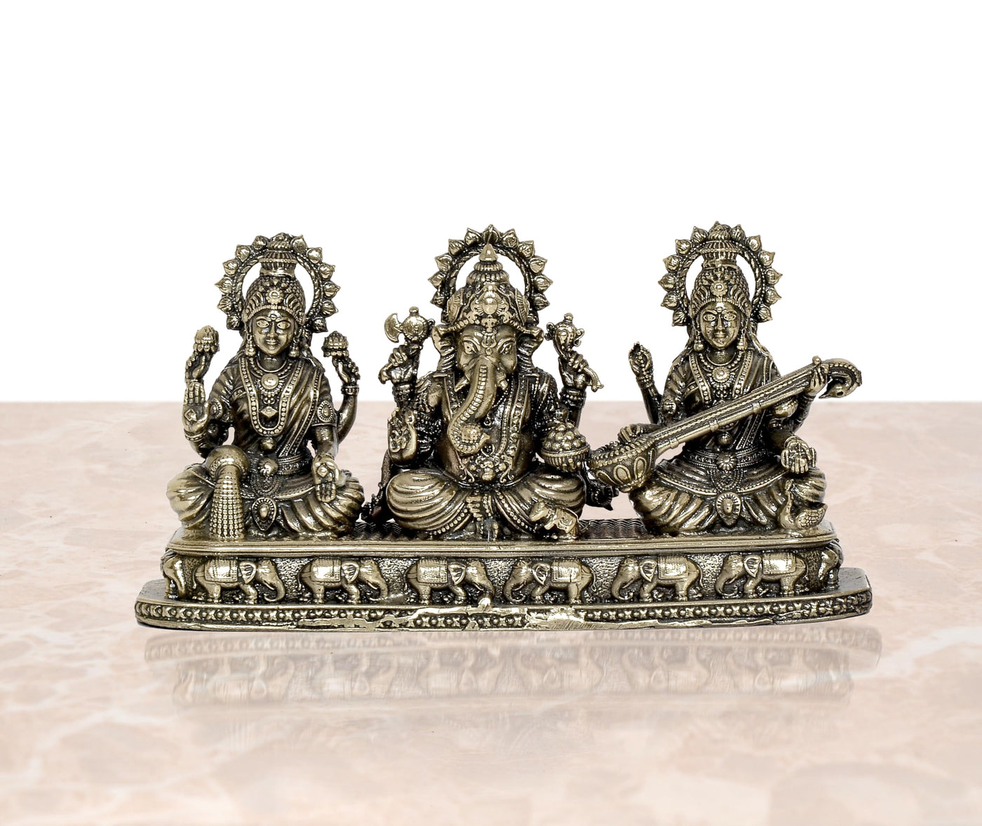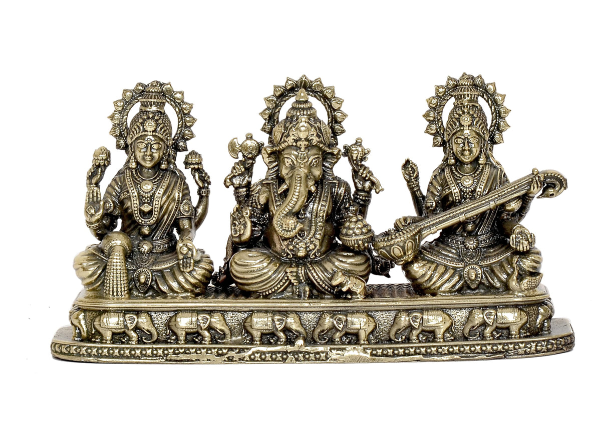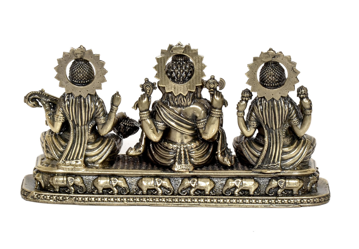 Dattatreya Fine Bronze Ganesha Laxmi Saraswati Idol Temple Murti Diwali Pooja Gift Decoration Showpiece (Height 3 Inch)