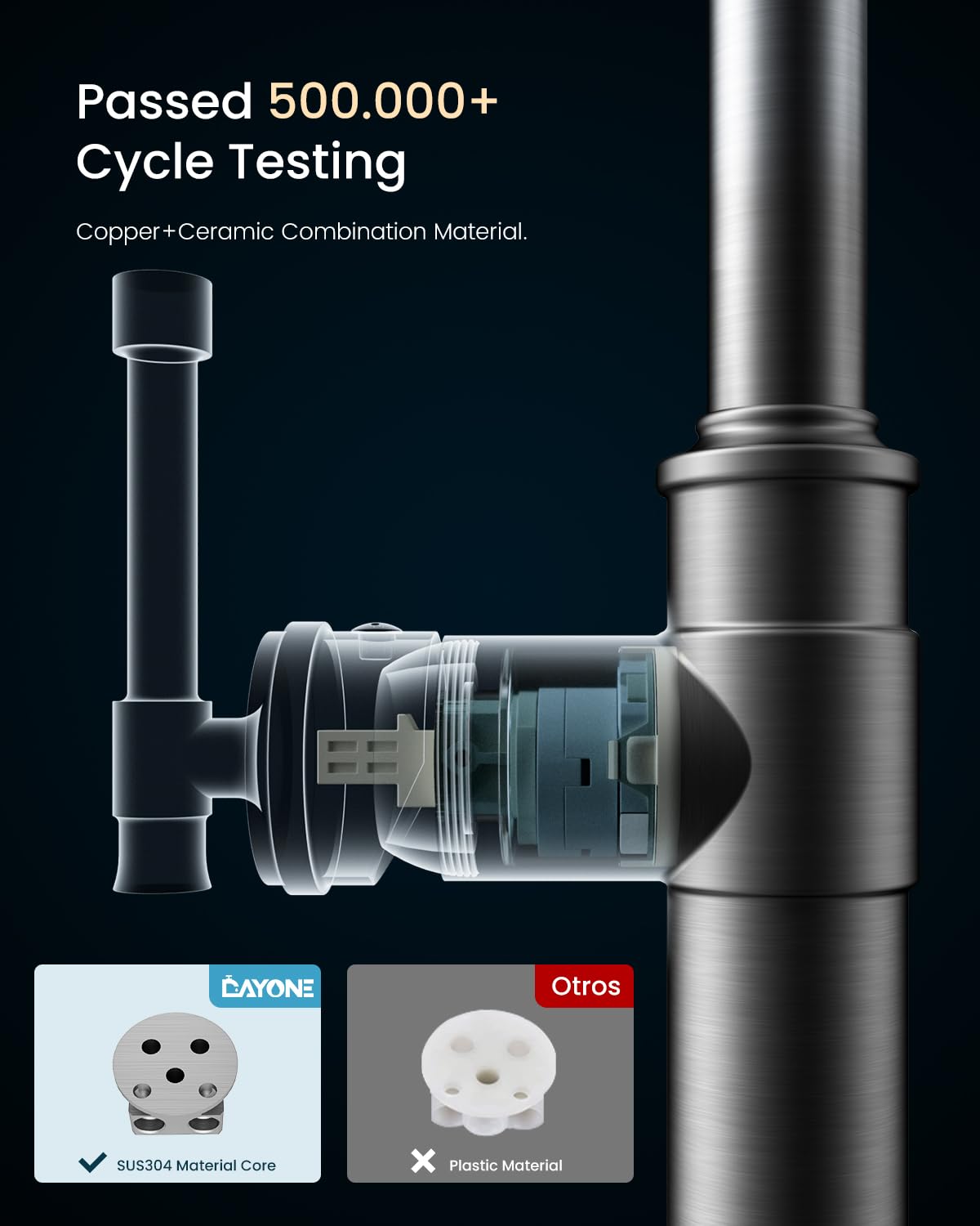 • Q: What is the design style of this faucet? A: The DAYONE faucet showcases an antique and patented design that adds a stylish touch to any kitchen, making it a standout feature.