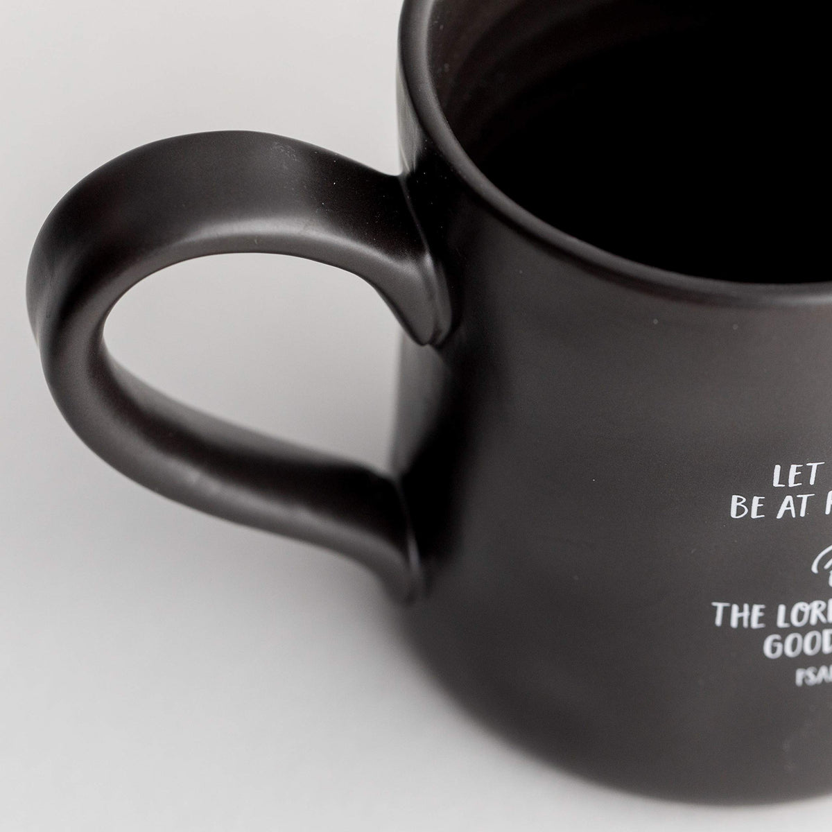 • Q: Is the design printed or hand-lettered? A: The mug features a beautiful white hand-lettered script on a black background, enhancing its inspirational appeal.