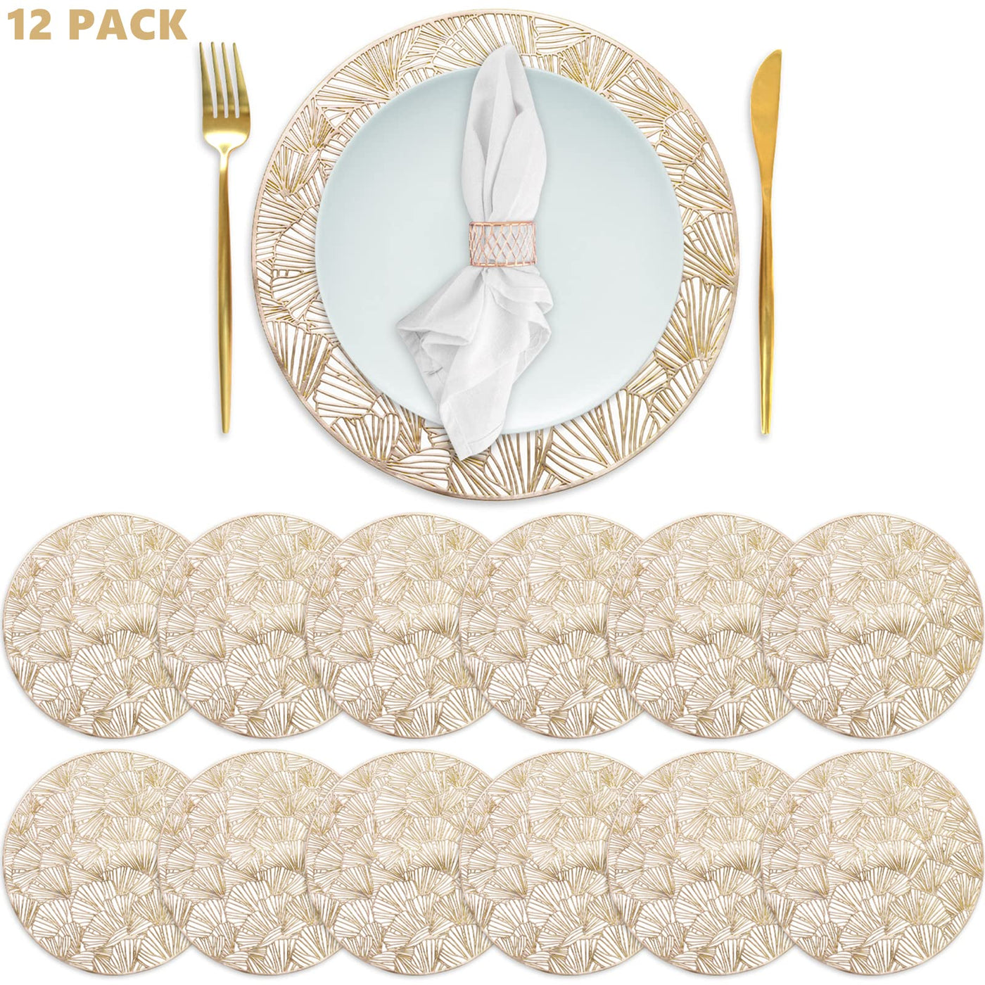 Deayou Set Of 12 Round Pressed Vinyl Placemats, Gold Wedding Accent Centerpiece Placemat, Non-Slip Placemats For Dining Table, K