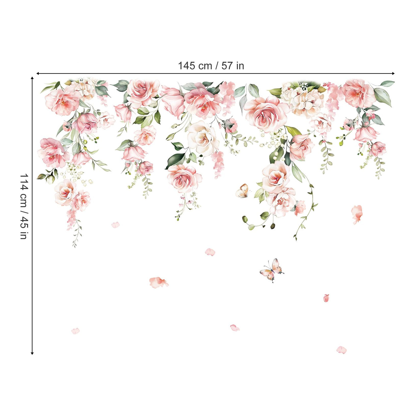 Decalmile Spring Large Pink Flower Wall Decals Hanging Vine Floral Wall Stickers Baby Nursery Girls Bedroom Living Room Wall Dec