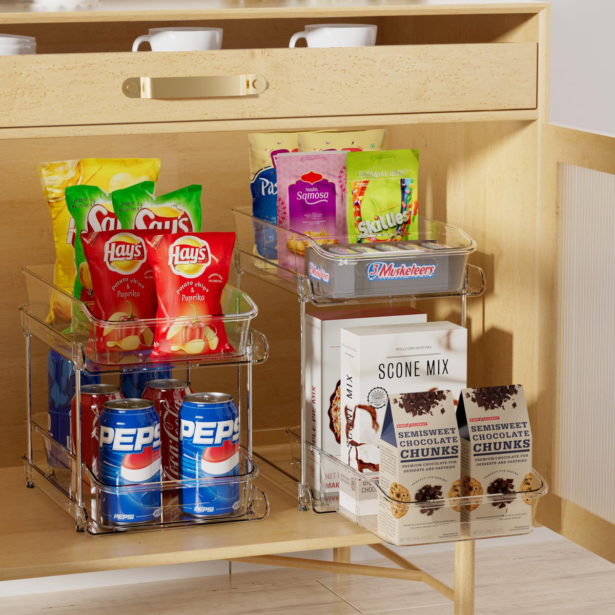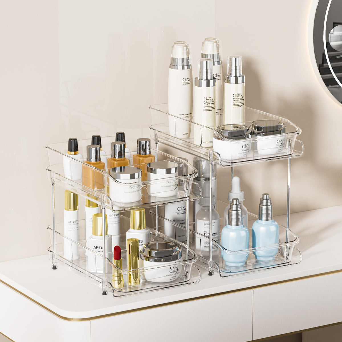 Delamu 2 Sets Of 2-Tier Clear Under Sink Organizers And Storage, Multi-Purpose Stackable Bathroom Cabinet Organizers, Pull Out K
