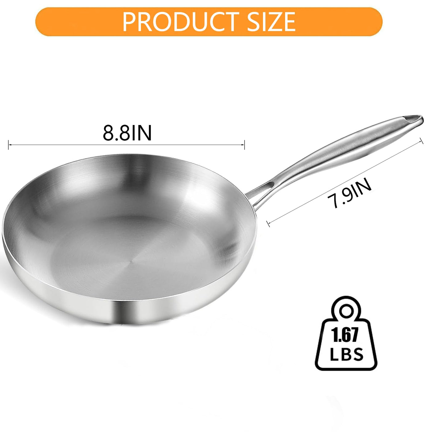 Delarlo Whole Body Tri-Ply Stainless Steel 8Inch Small Frying Pan, Chef'S Pans Oven Safe Induction Kitchen Skillet,Suitable For