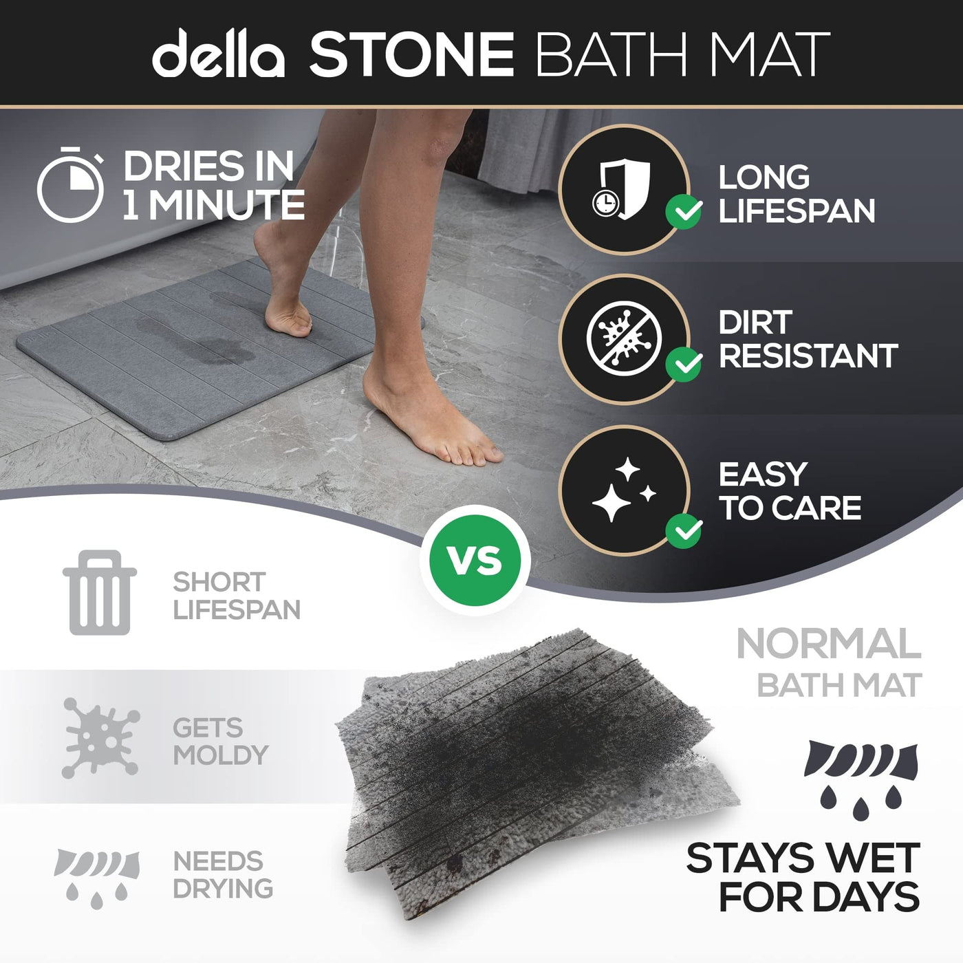 Della Premium Stone Bath Mat - Super Absorbent Diatomaceous Earth Shower Mat - Quick Drying Bathstone For Bathroom Floor - Moder