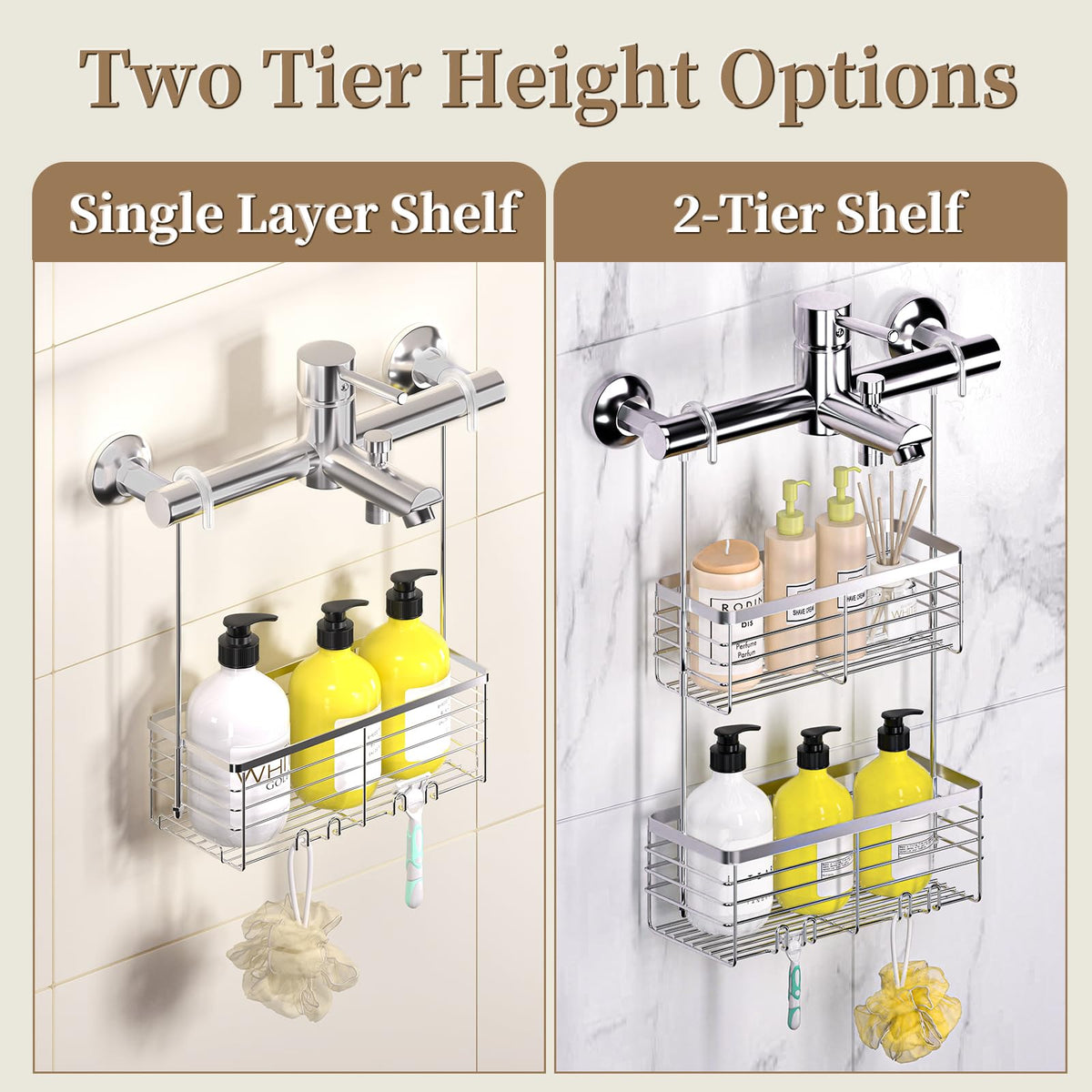 Dellan Hanging Shower Organizer, 2-Tier Shower Rack With Hooks Over The Door, Bathroom Shower Caddy And Basket