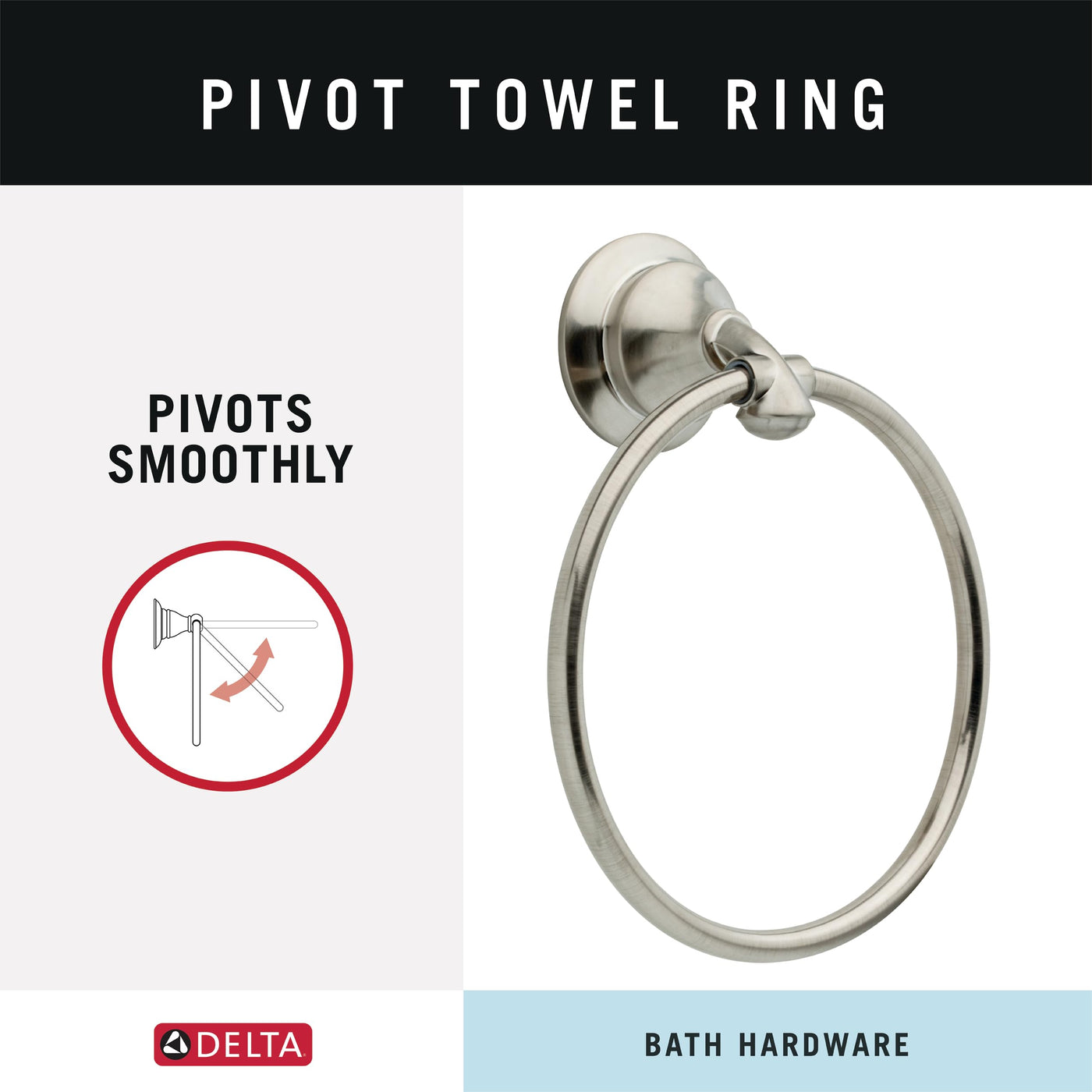 • Q: How do I install the Delta Linden Towel Ring? A: Installation is straightforward as all mounting hardware and detailed instructions are included with the towel ring.