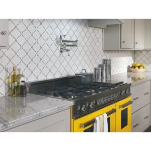 • Q: Can the Delta Pot Filler be pushed flush against the wall when not in use? A: Yes, the Delta Pot Filler can be pushed flush with the wall when not in use, saving space and maintaining a clean look in your kitchen.