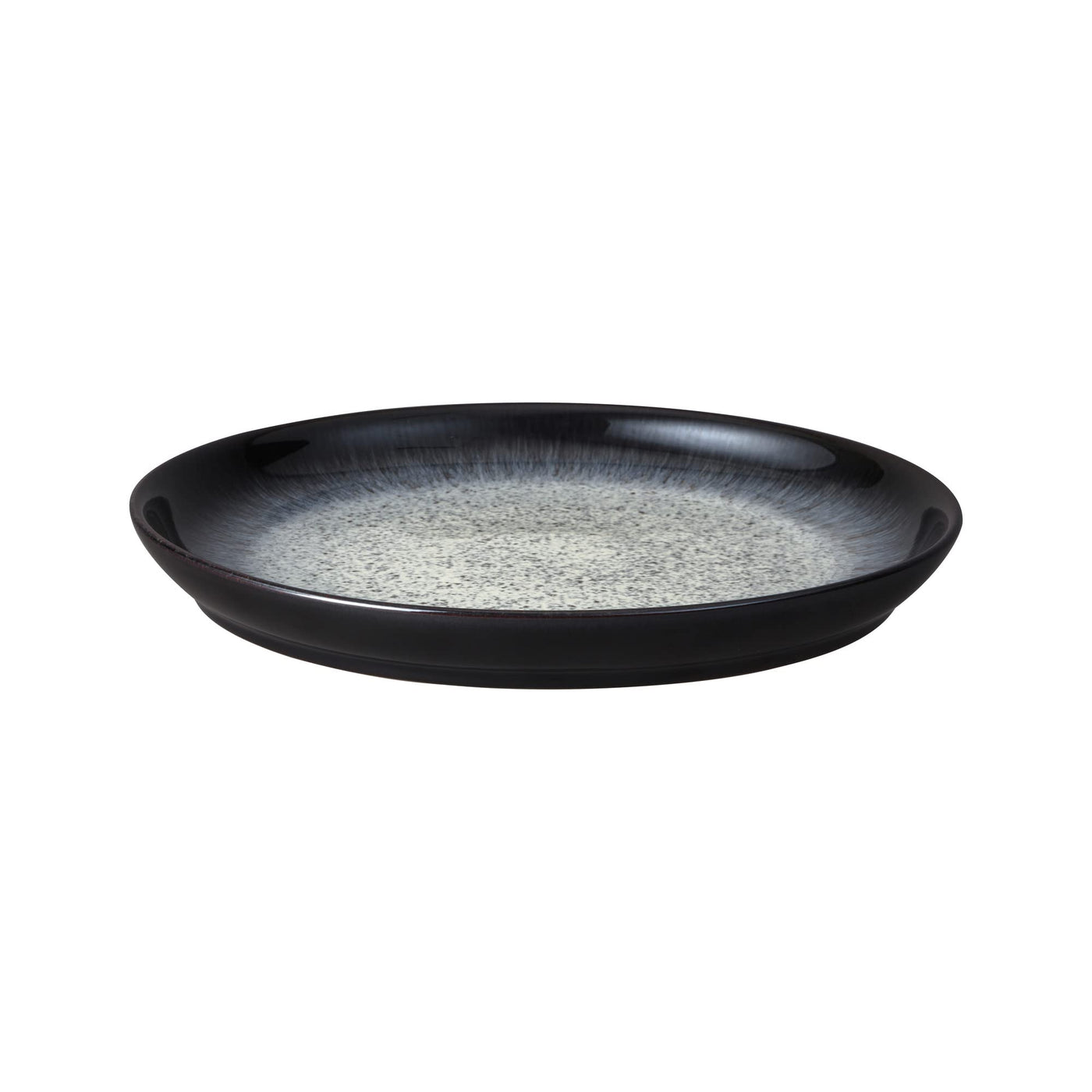 • Q: What makes the glaze on these plates unique? A: The unique glaze features a striking speckled finish with tones of black, grey, and white, individually created by the reaction of glazes during firing.