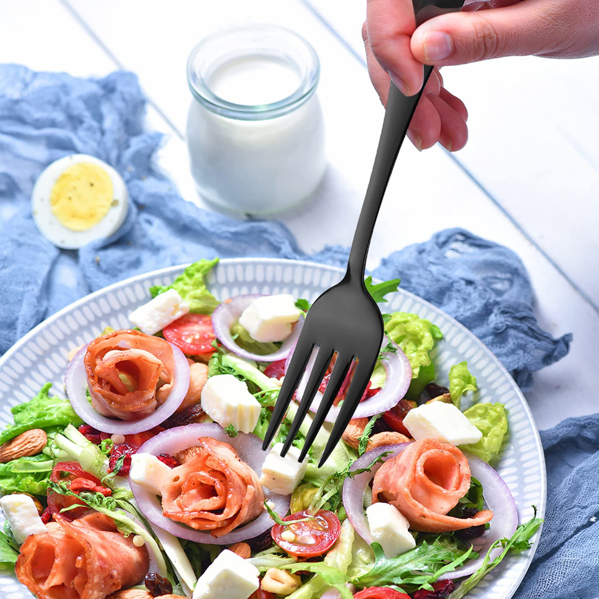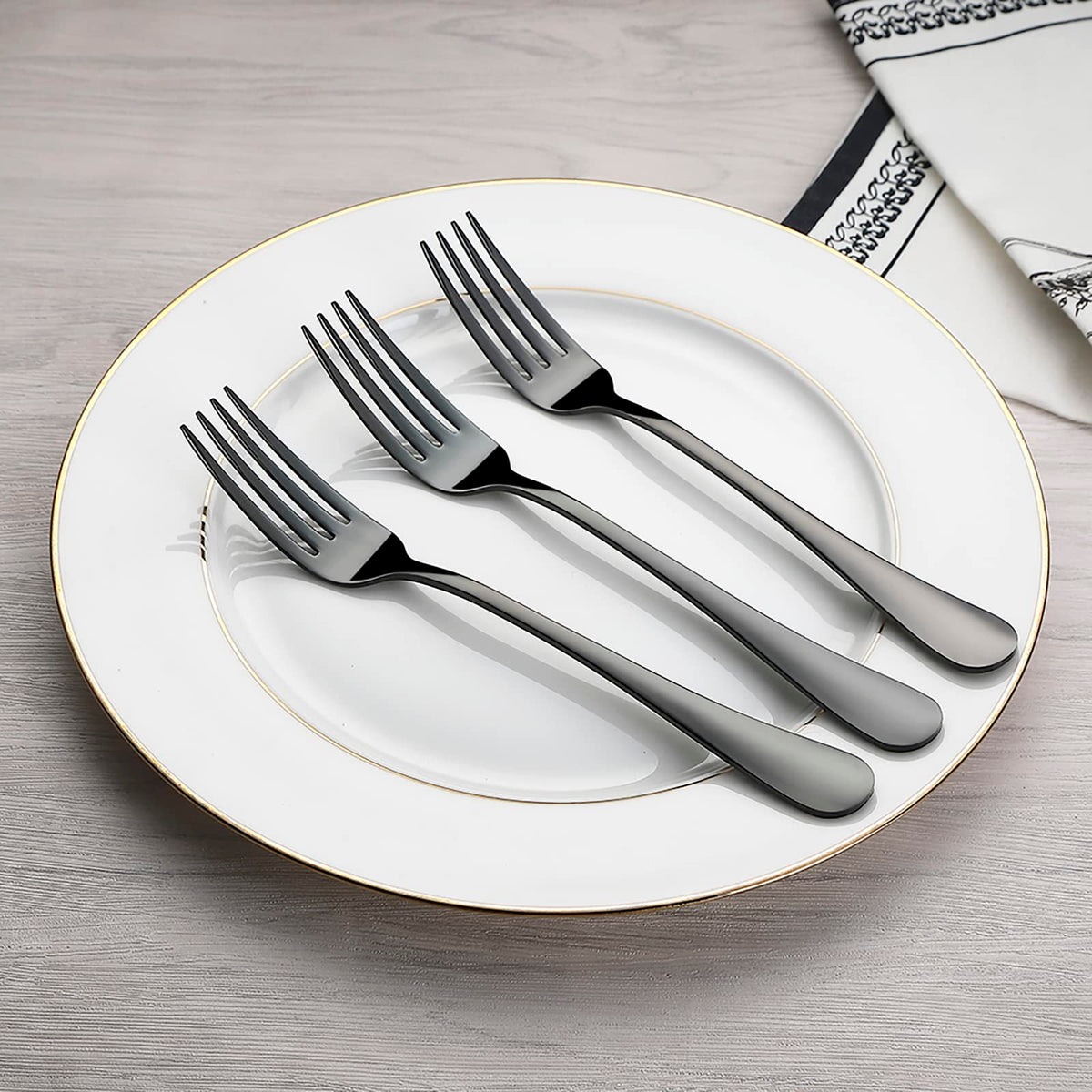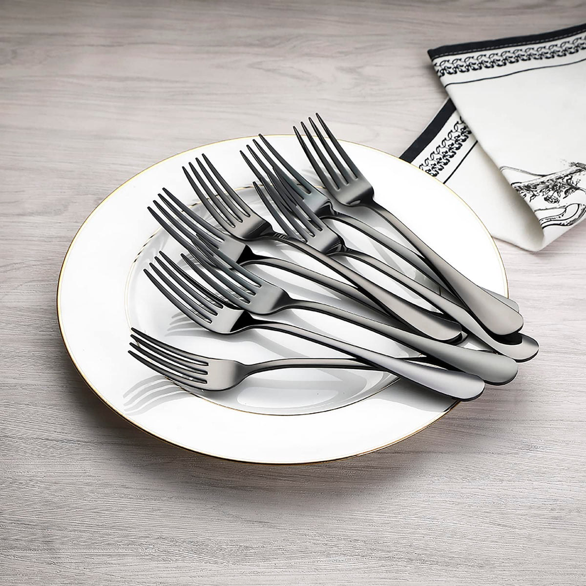 Devico Forks Set, Good Stainless Steel 10-Piece Black Silverware Cutlery Reusable Dinner Forks
