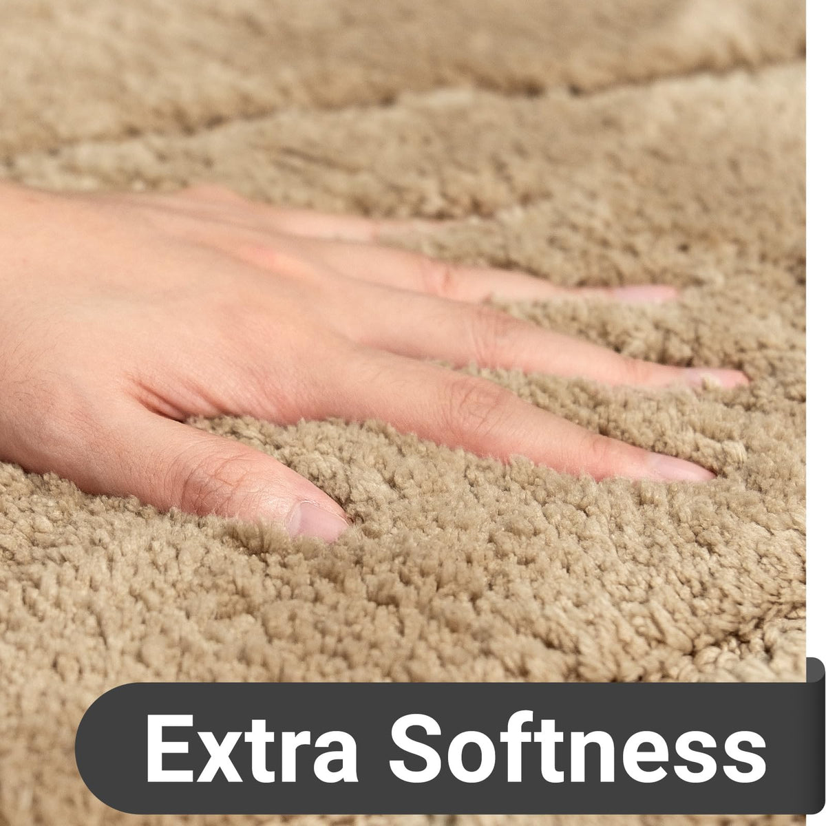 - Q: How does the rug handle moisture? A: The high-pile and thick polyester material quickly absorbs water, helping to keep your bathroom floors dry.