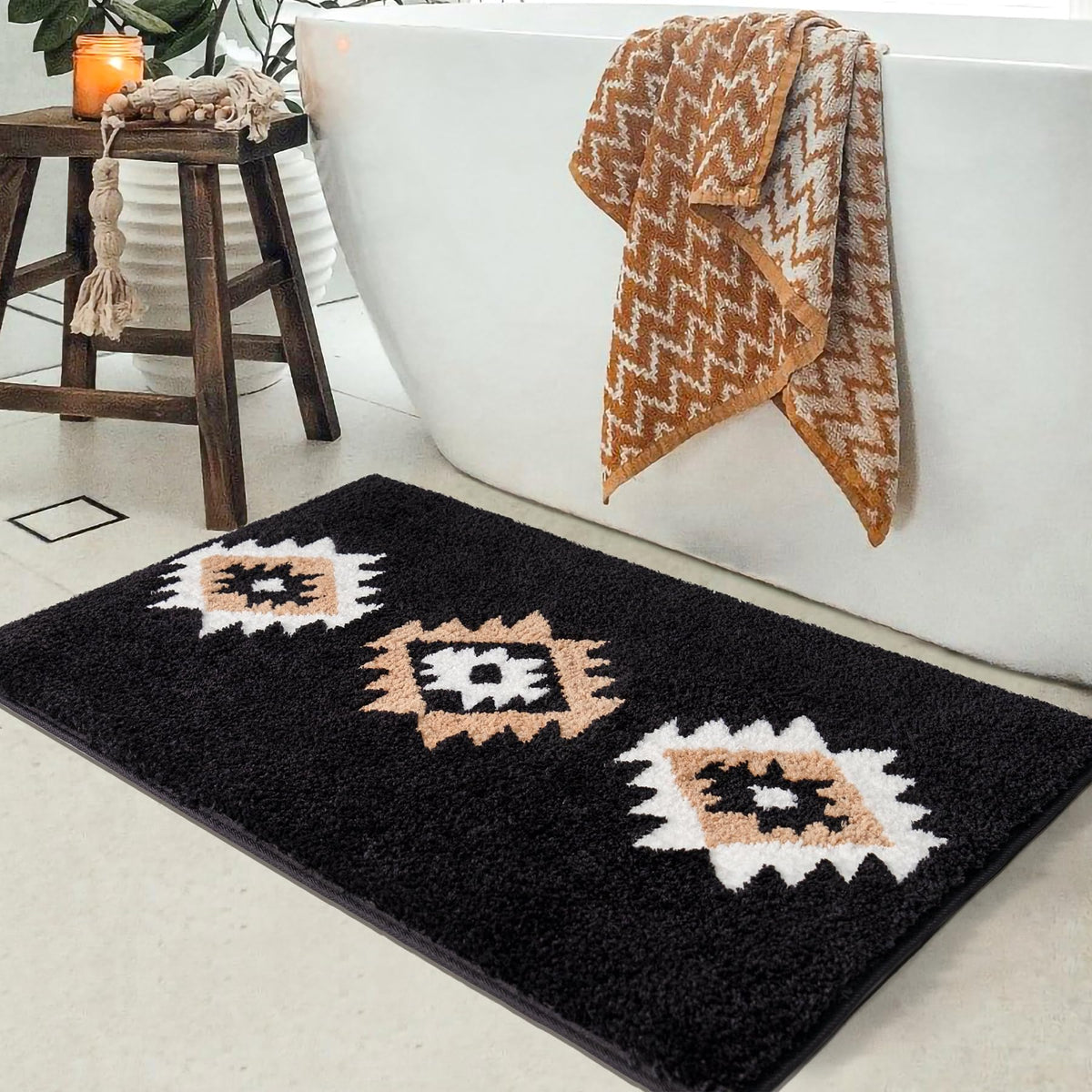 Dexde Boho Bathroom Rugs Black Aztec Bath Mat Non Slip Western Geometric Bath Rug Luxury Soft Absorbent Carpet For Bathroom Show