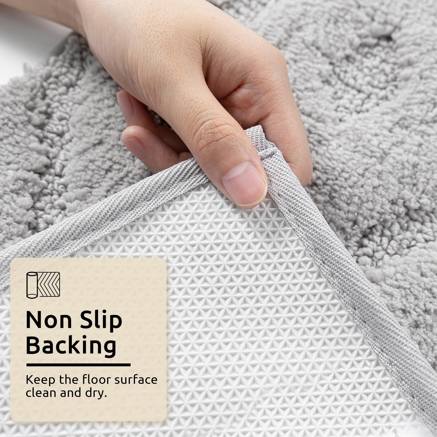 - Q: Is this bathroom rug non-slip? A: Yes, the DEXDE Gray Bathroom Rug features a non-slip bottom made from TPR material, ensuring it stays in place on clean and dry floors.
