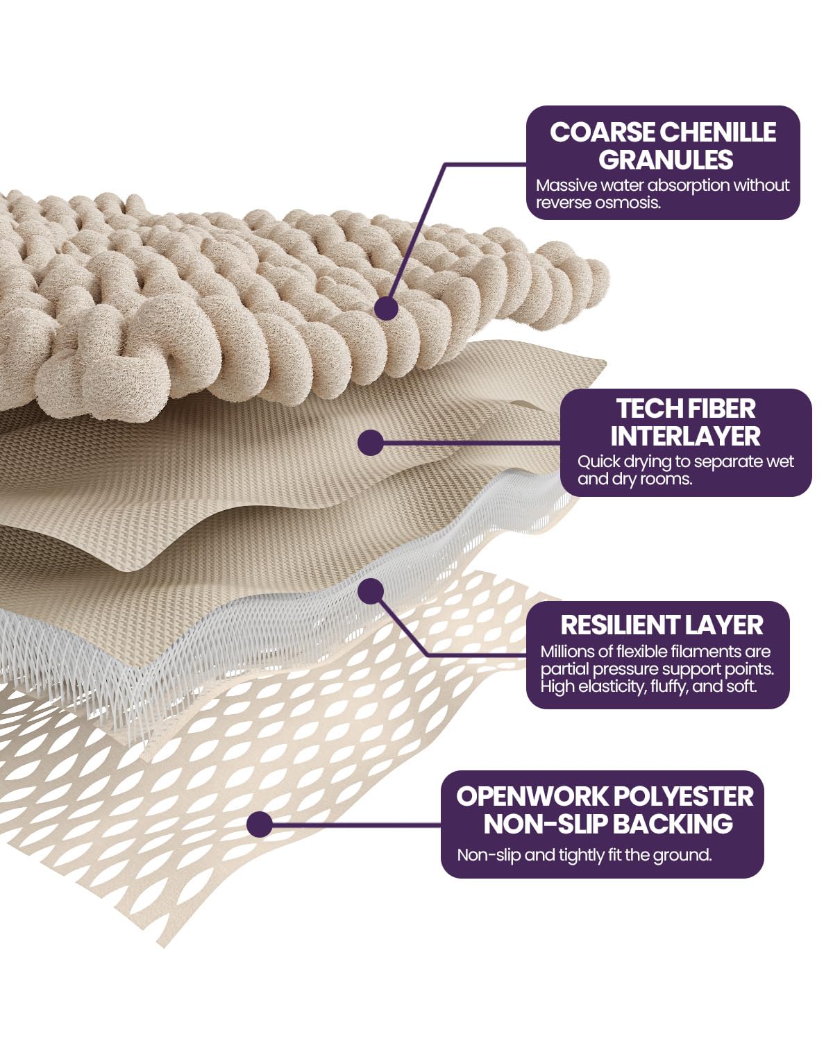 Dexi Bathroom Rugs, Chenille Super Absorbent Mats, Non Slip Washable Rug Carpet, Luxury Soft Thick Plush Bathmat For Tub, Shower